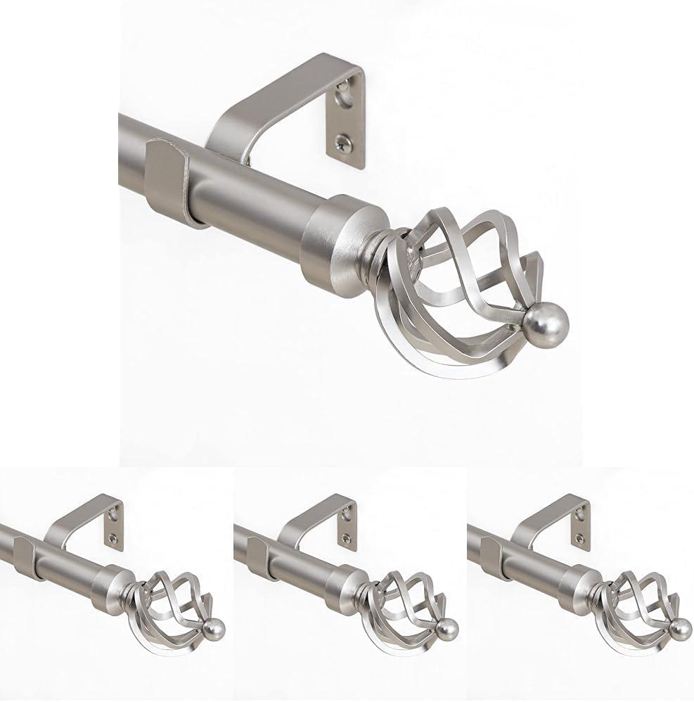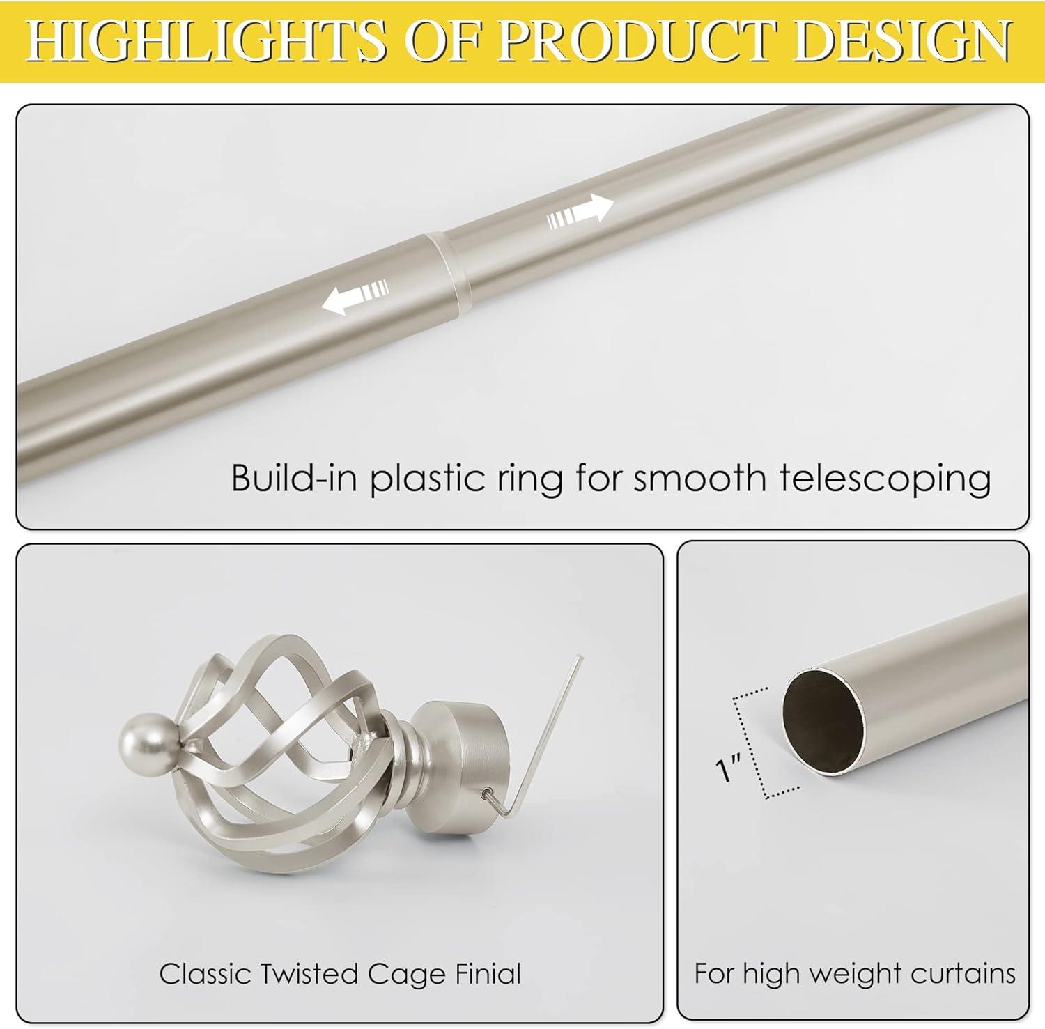 NICETOWN Curtain Rods for Windows 28 to 48 inch, Adjustable Curtain Rod 1 inch Diameter Modern Twisted Cage Finial Design Decorative Drapery Rod for Valances Tiers, 28-48″ Length, Matte Black(Satin Nickel)