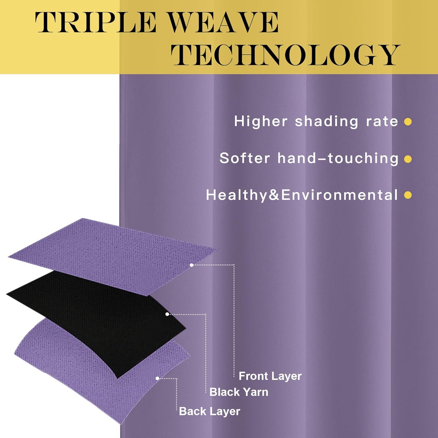 AMAZING FABRIC: The blackout curtain's fabric is a super soft and heavily innovative triple-weave polyester fabric. The Same material back as of front makes it appear more elegant. The 8 sliver grommets top (inner diameter is 1.6-inch) adds a modern touch and easy hanging.