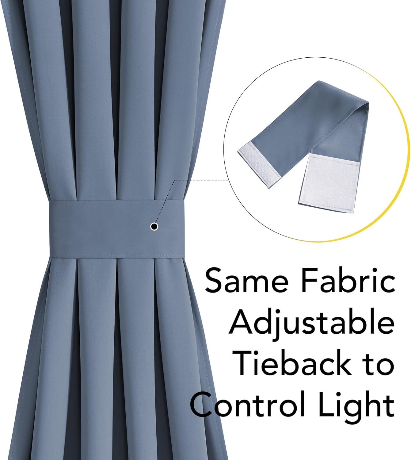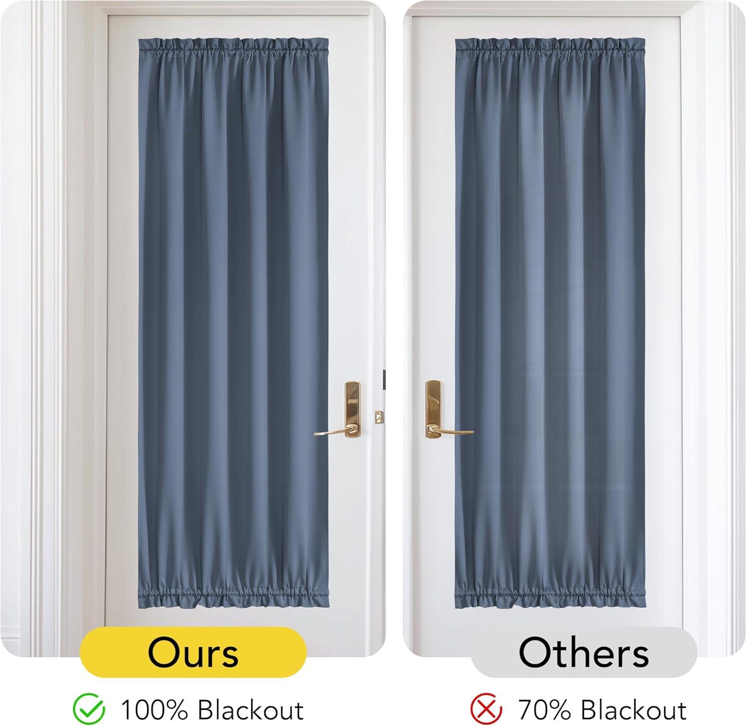 NICETOWN Door Curtain Panel, Grey French Door Curtains Blackout Thermal Insulated Curtain Sidelight Privacy for Window/Living Room/Doorways/Classroom (25W by 72L inches, 1 Panel)(100% Blackout - Stone Blue)