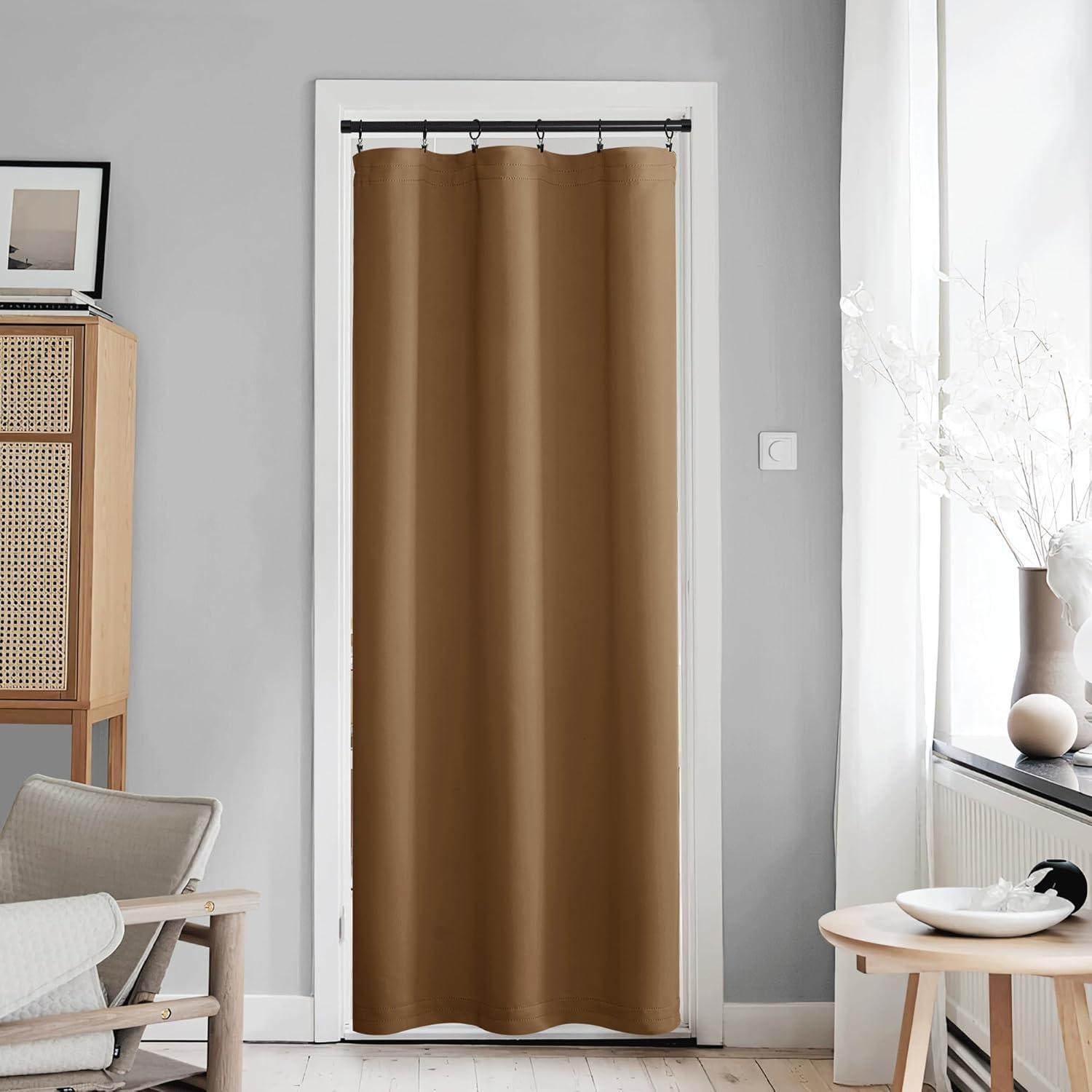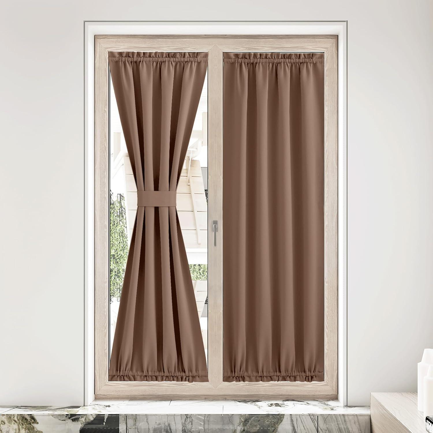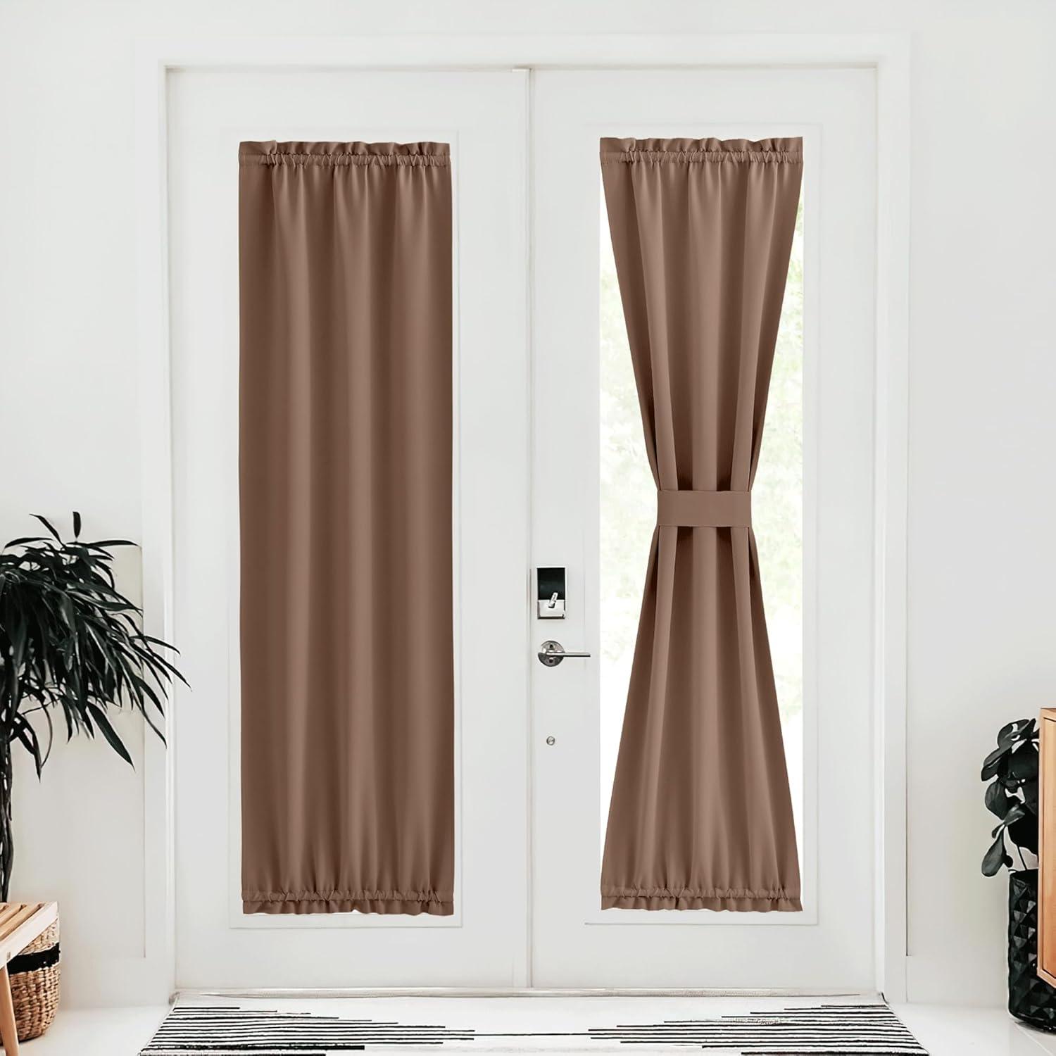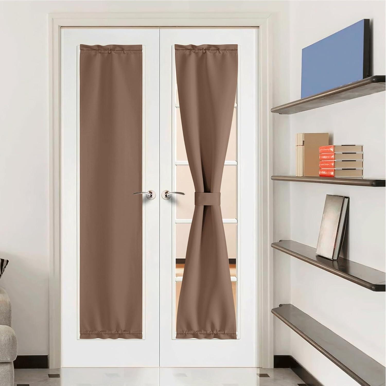 NICETOWN Door Curtain Panel, Grey French Door Curtains Blackout Thermal Insulated Curtain Sidelight Privacy for Window/Living Room/Doorways/Classroom (25W by 72L inches, 1 Panel)(Cappuccino)