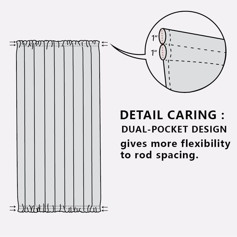Nice Function: These french door curtains are made of triple weave blackout material, which can block 85%-95% of harmful lights and UV rays out. By a special weaving way, the curtain prevents hot air in summer and cold wind in winter from entering the room.