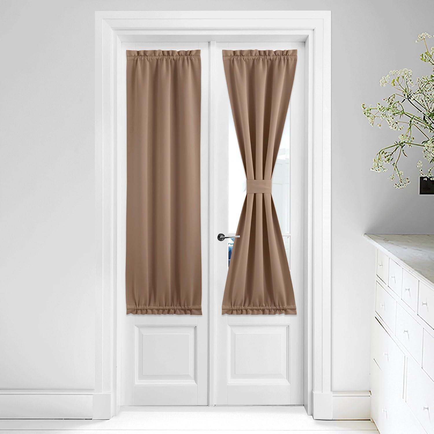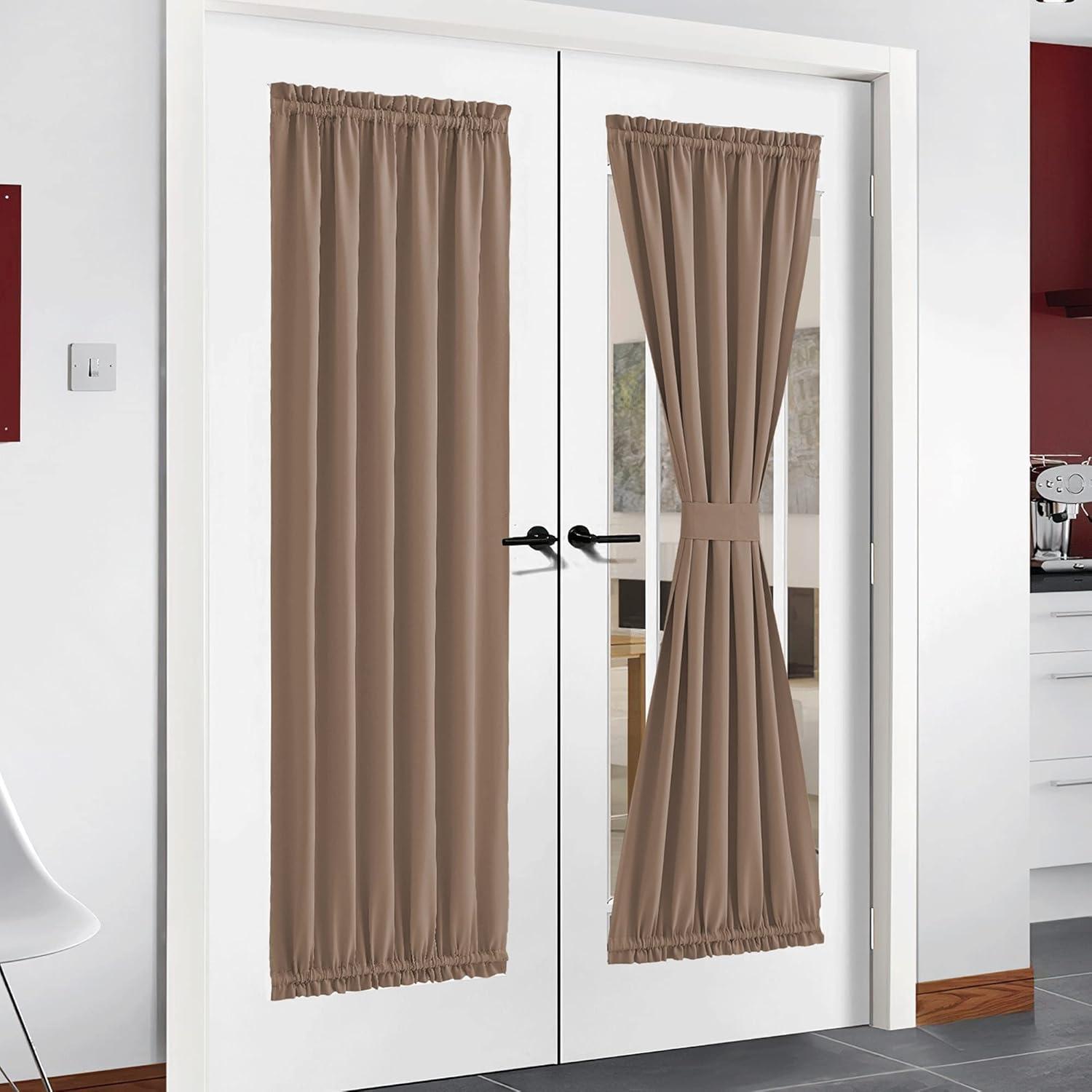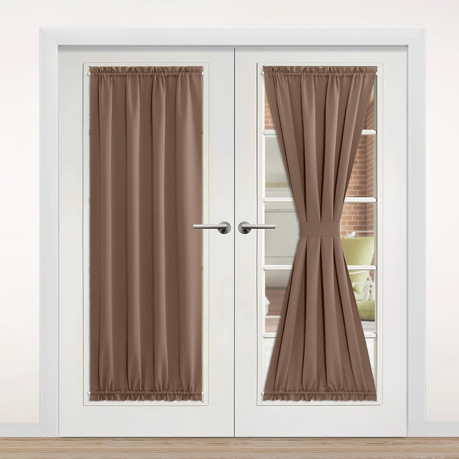 imageNICETOWN Door Curtain Panel Grey French Door Curtains Blackout Thermal Insulated Curtain Sidelight Privacy for WindowLiving RoomDoorwaysClassroom 25W by 72L inches 1 PanelCappuccino