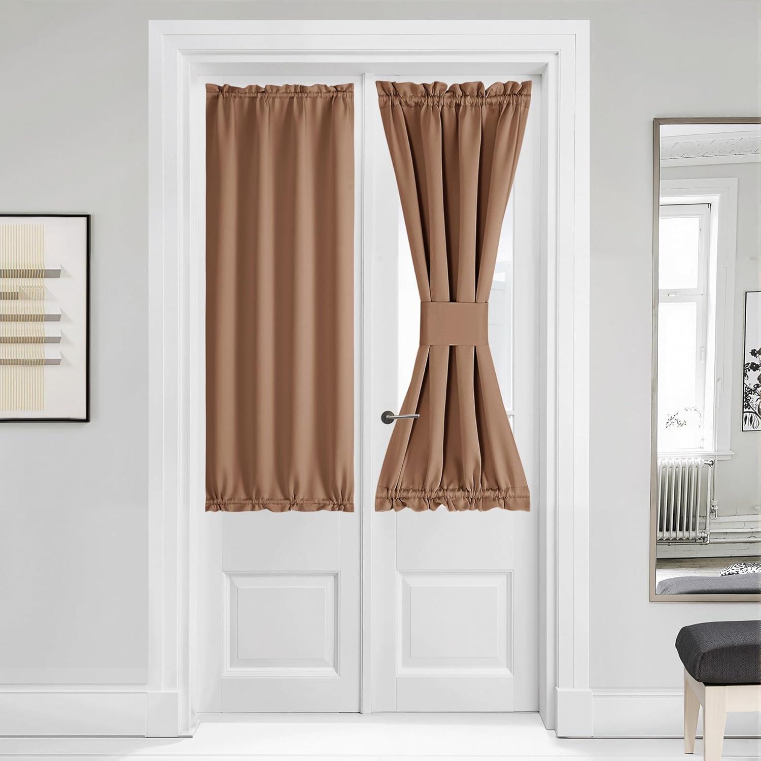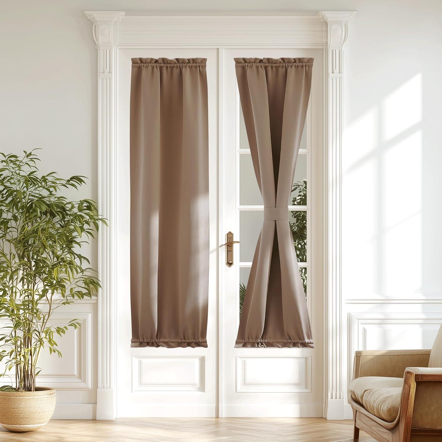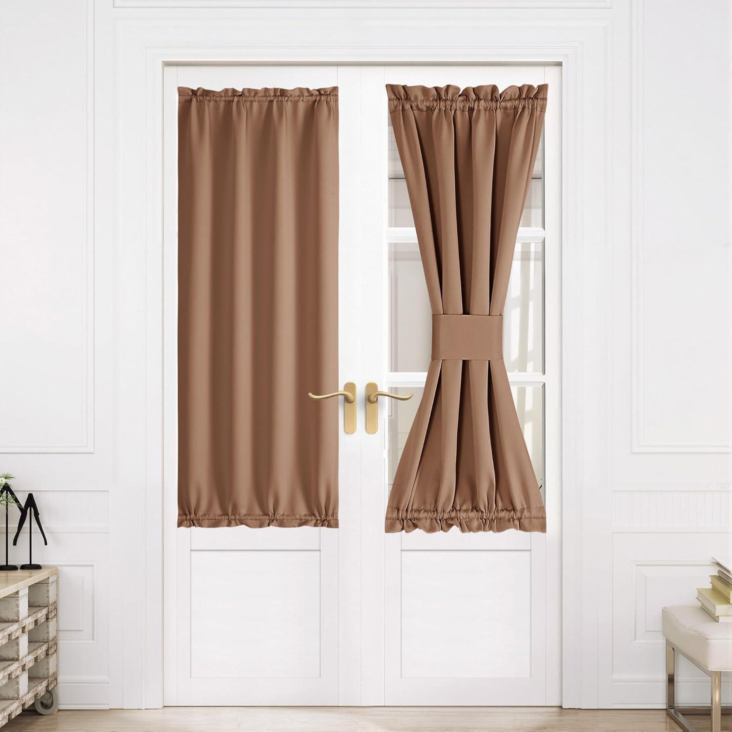 imageNICETOWN Door Curtain Panel Grey French Door Curtains Blackout Thermal Insulated Curtain Sidelight Privacy for WindowLiving RoomDoorwaysClassroom 25W by 72L inches 1 PanelCappuccino