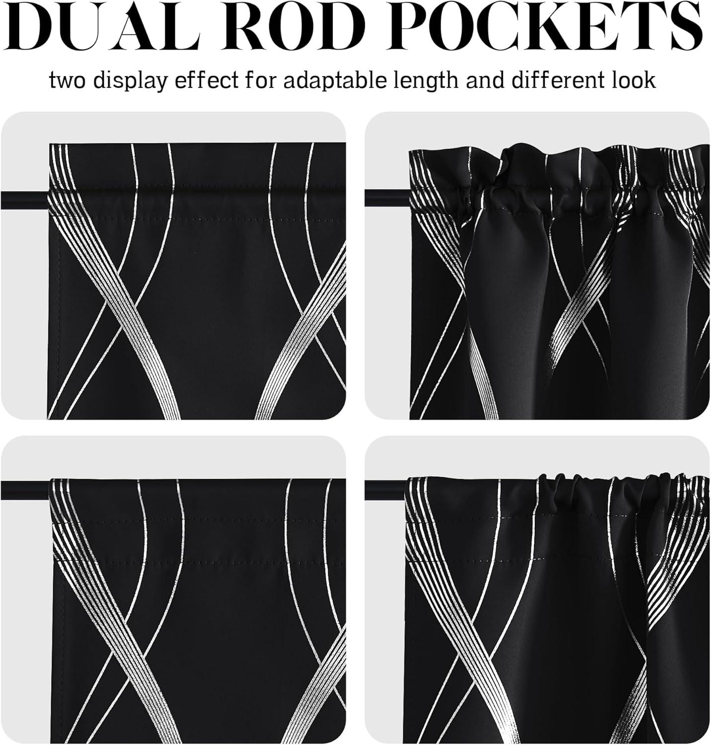imageNICETOWN Door Curtain Panel Grey French Door Curtains Blackout Thermal Insulated Curtain Sidelight Privacy for WindowLiving RoomDoorwaysClassroom 25W by 72L inches 1 PanelFoil Black
