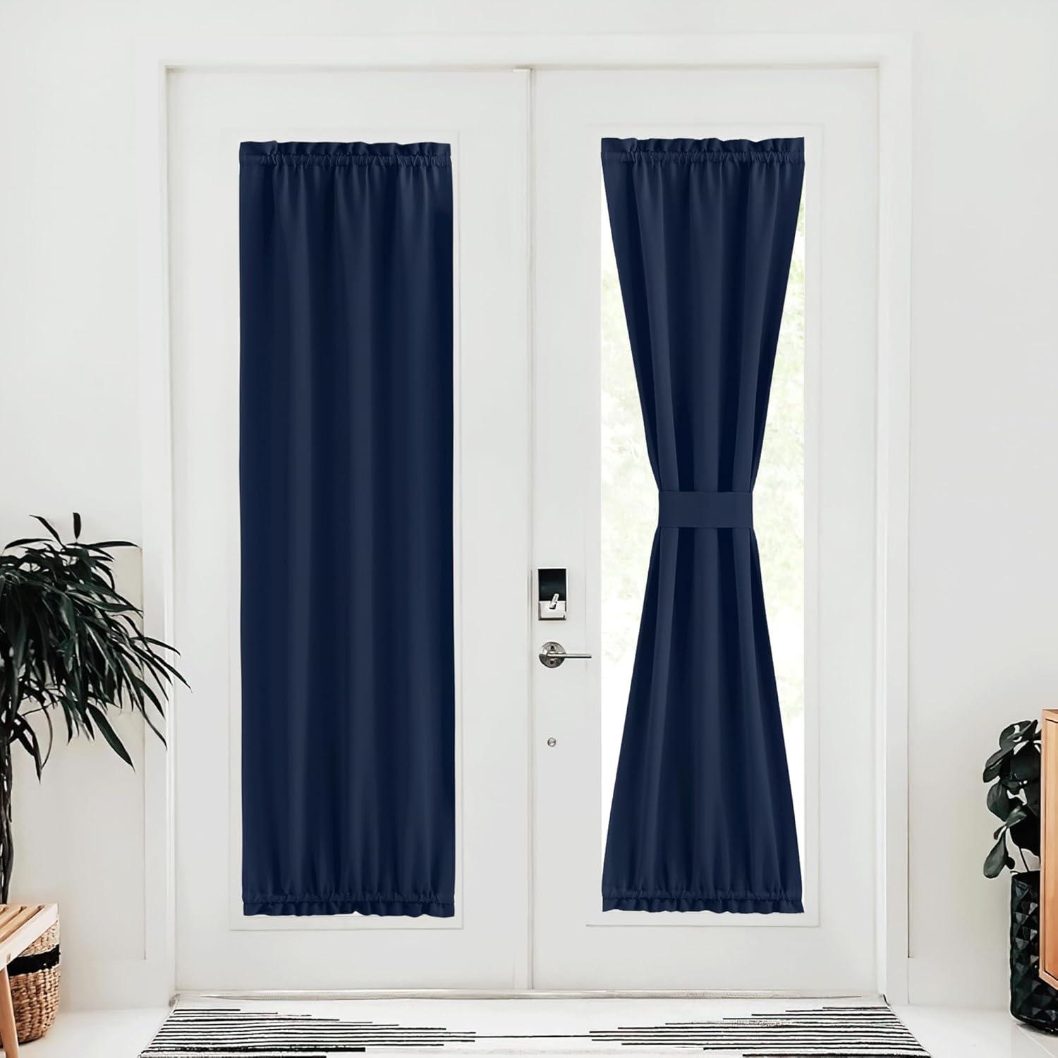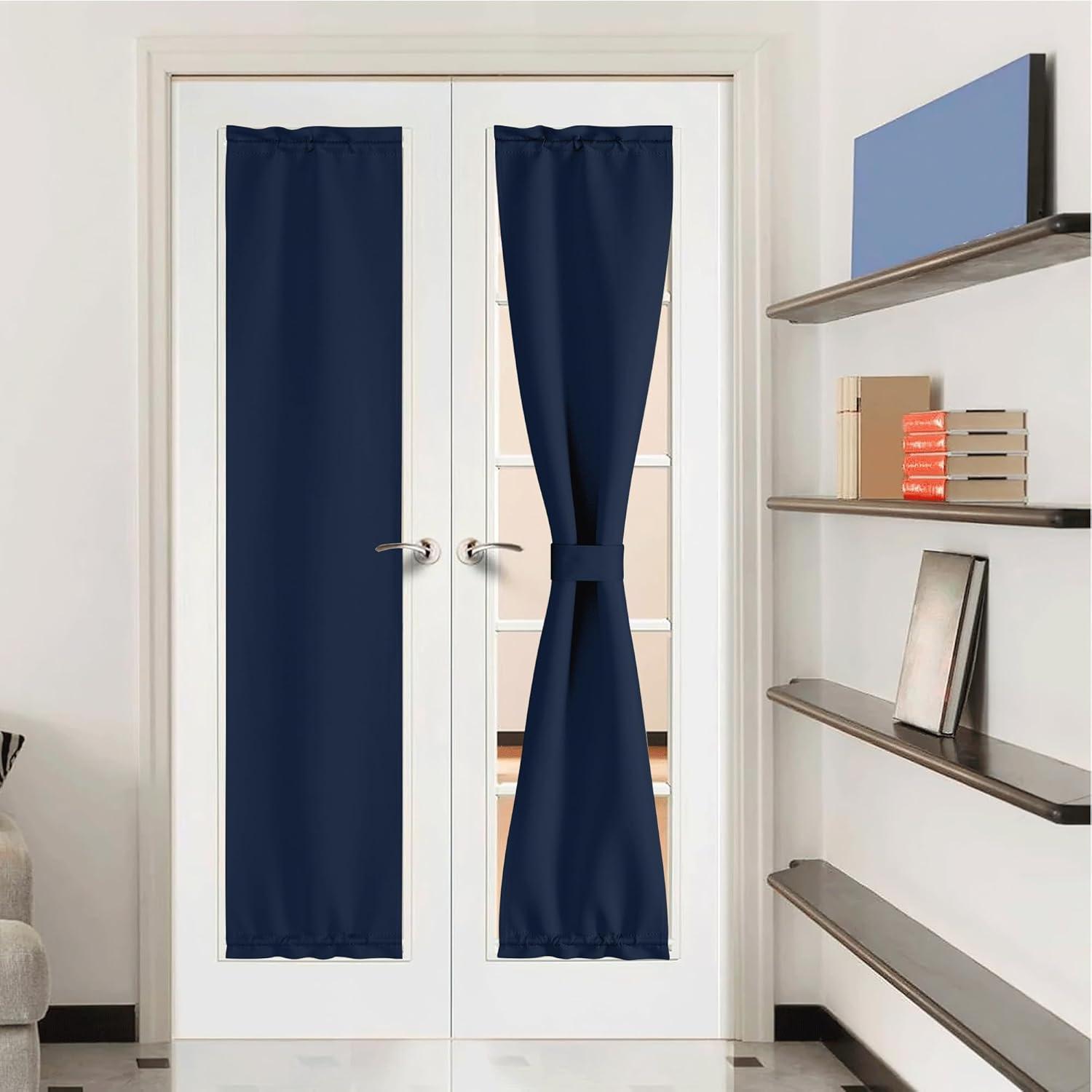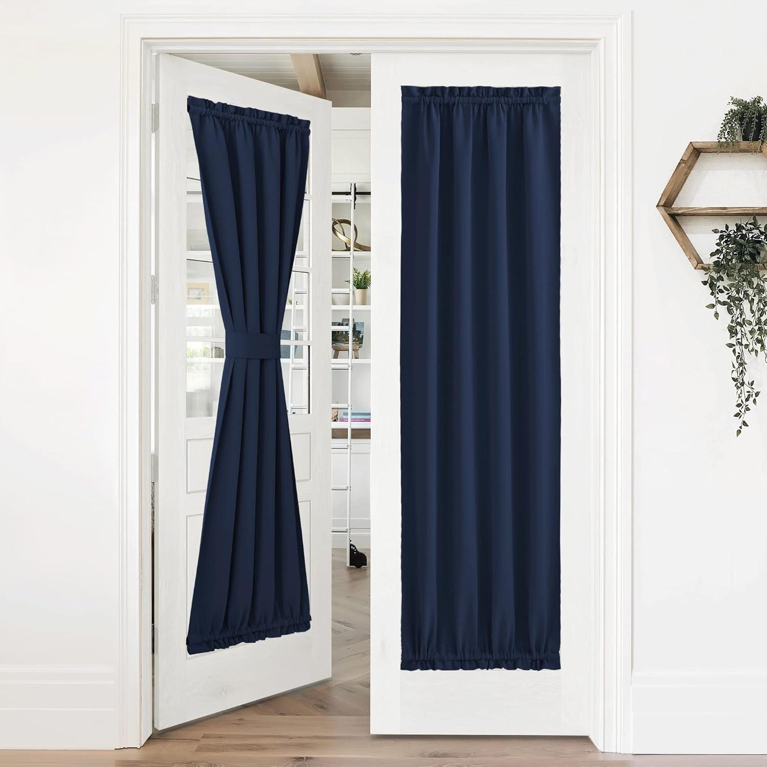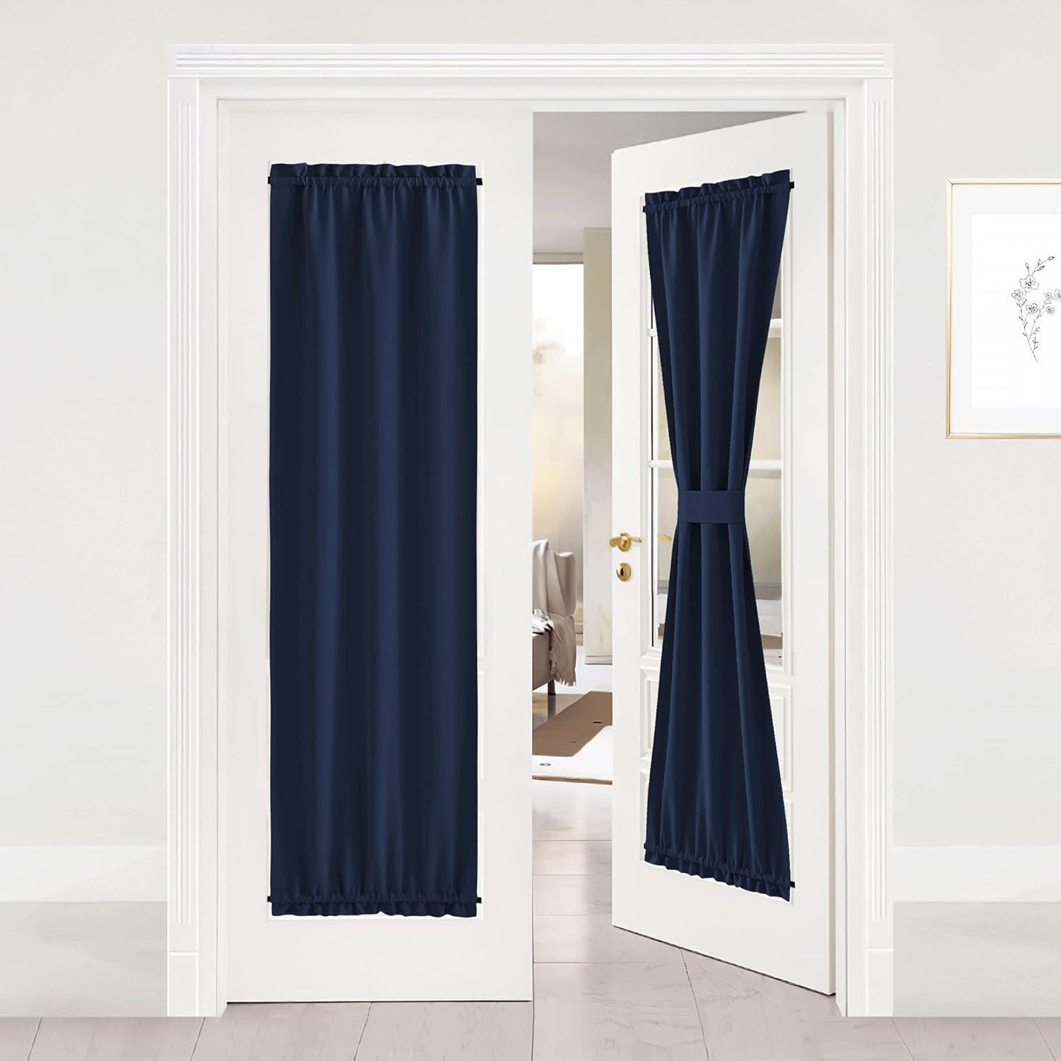 NICETOWN Door Curtain Panel, Grey French Door Curtains Blackout Thermal Insulated Curtain Sidelight Privacy for Window/Living Room/Doorways/Classroom (25W by 72L inches, 1 Panel)(Navy)