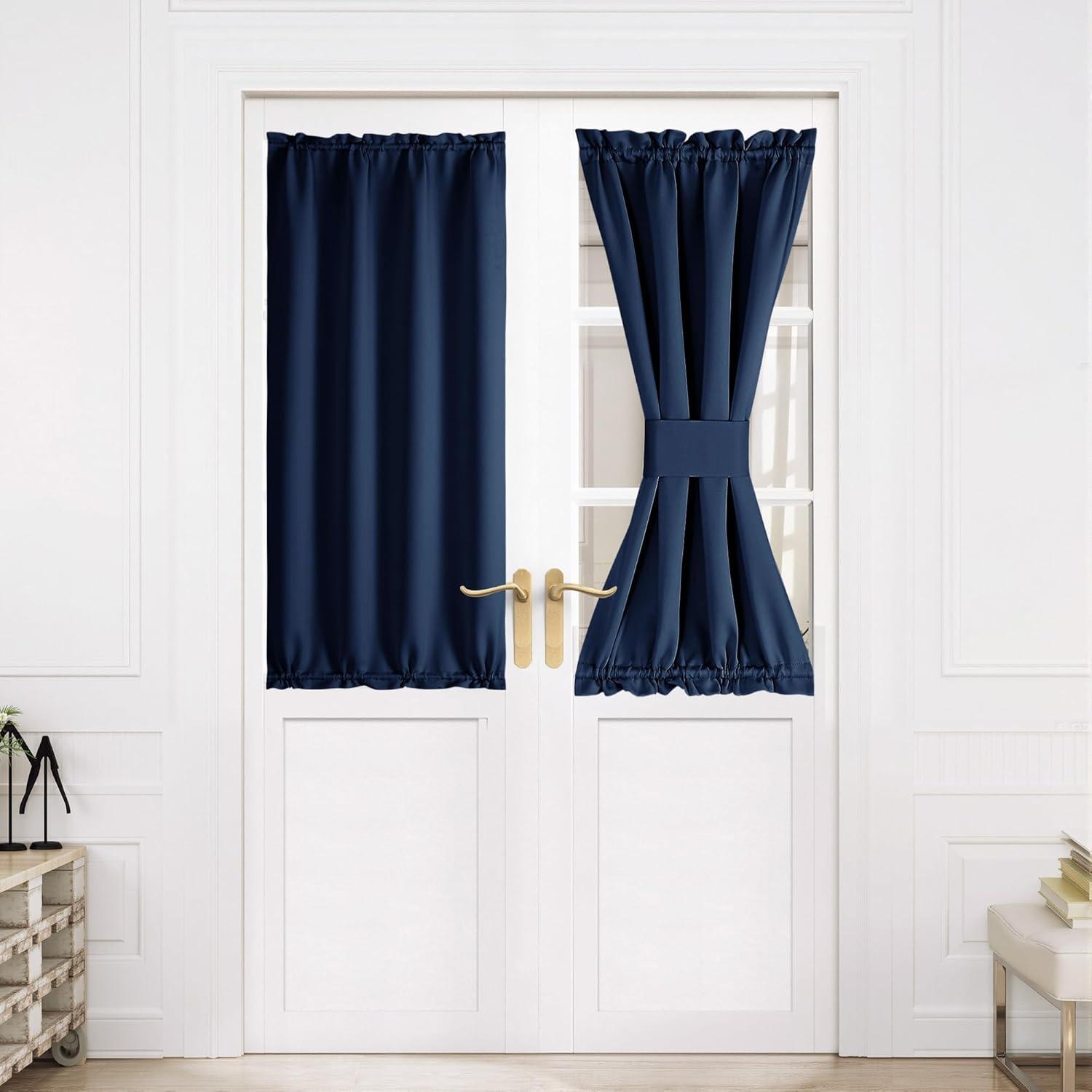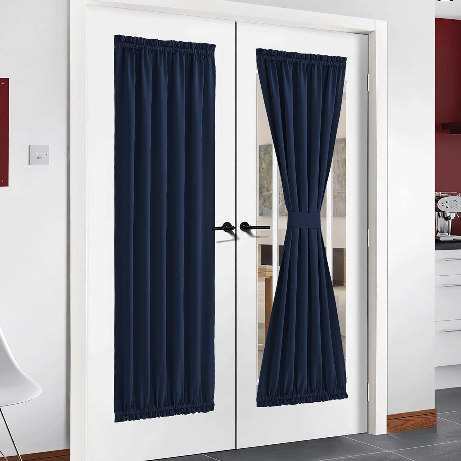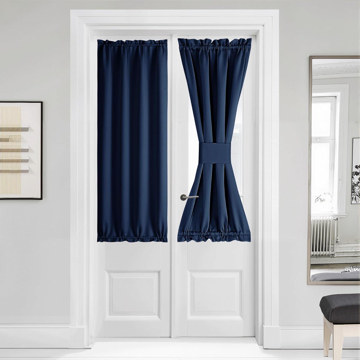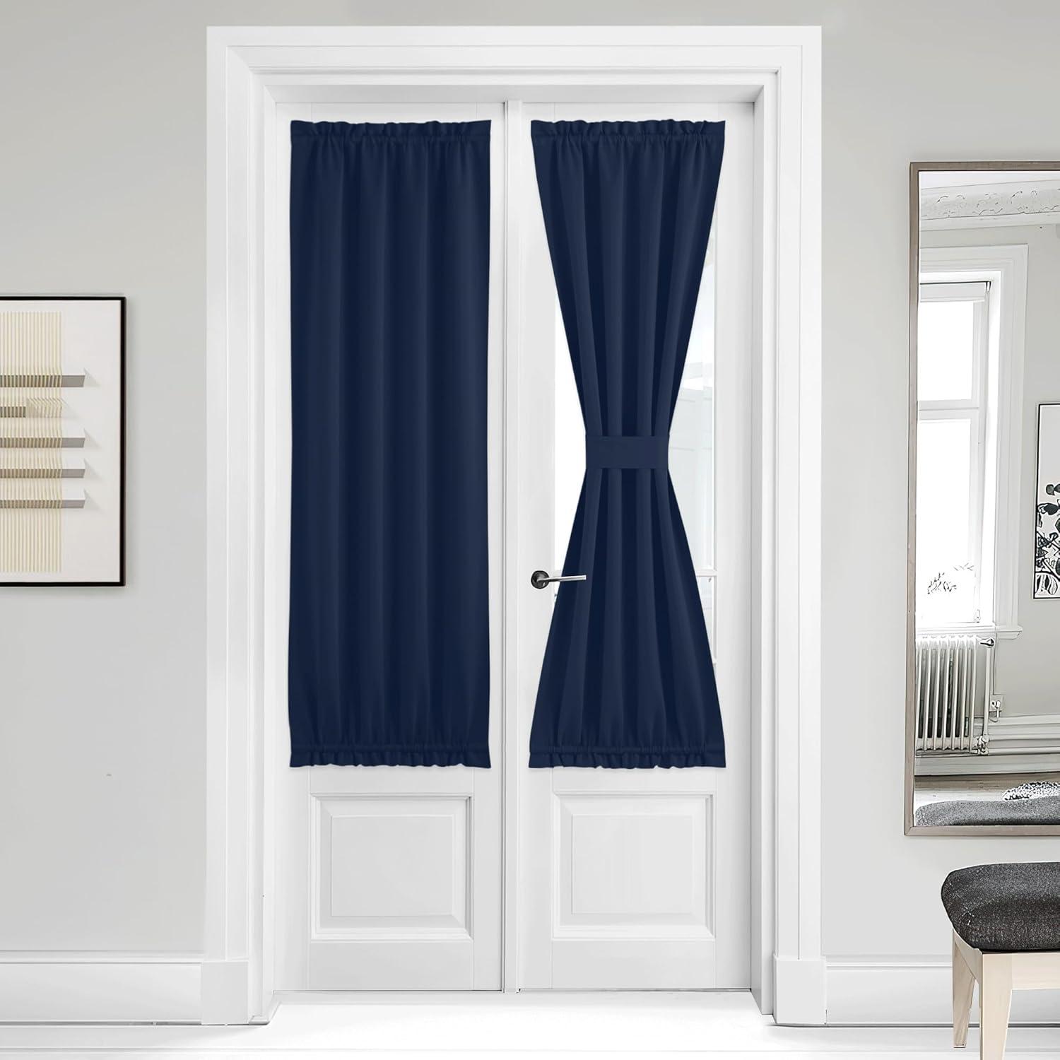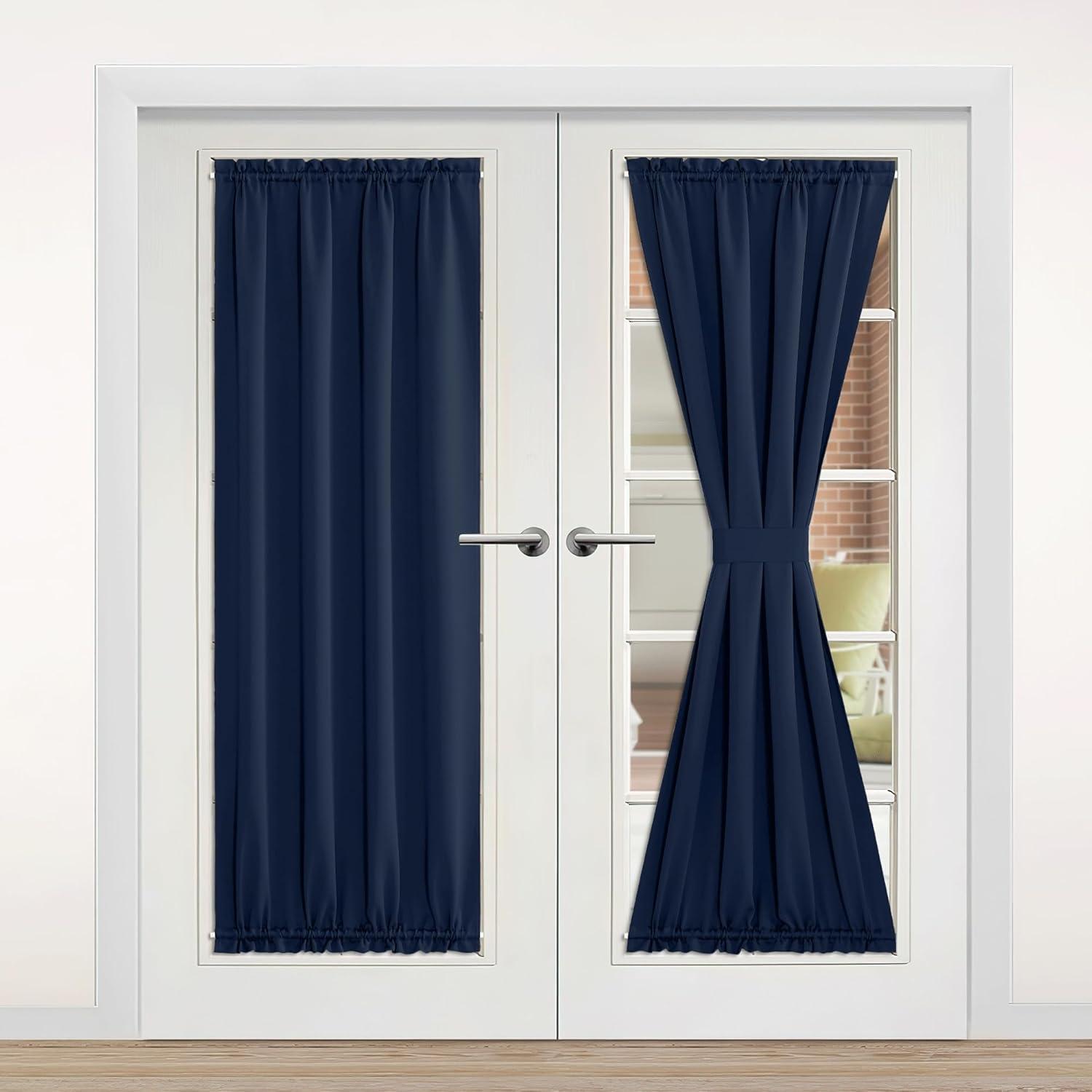 NICETOWN Door Curtain Panel, Grey French Door Curtains Blackout Thermal Insulated Curtain Sidelight Privacy for Window/Living Room/Doorways/Classroom (25W by 72L inches, 1 Panel)(Navy)