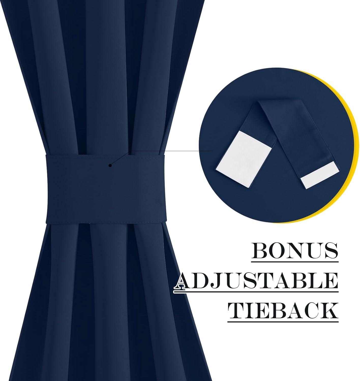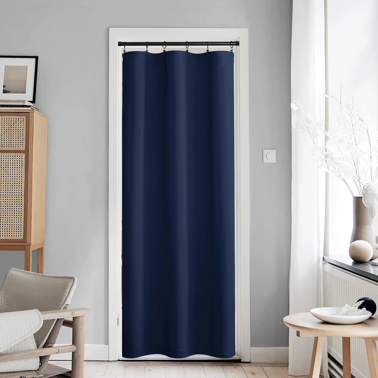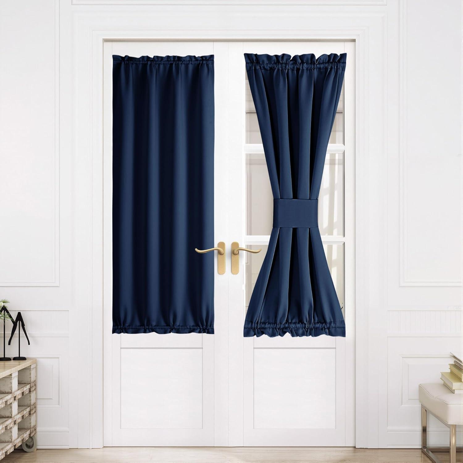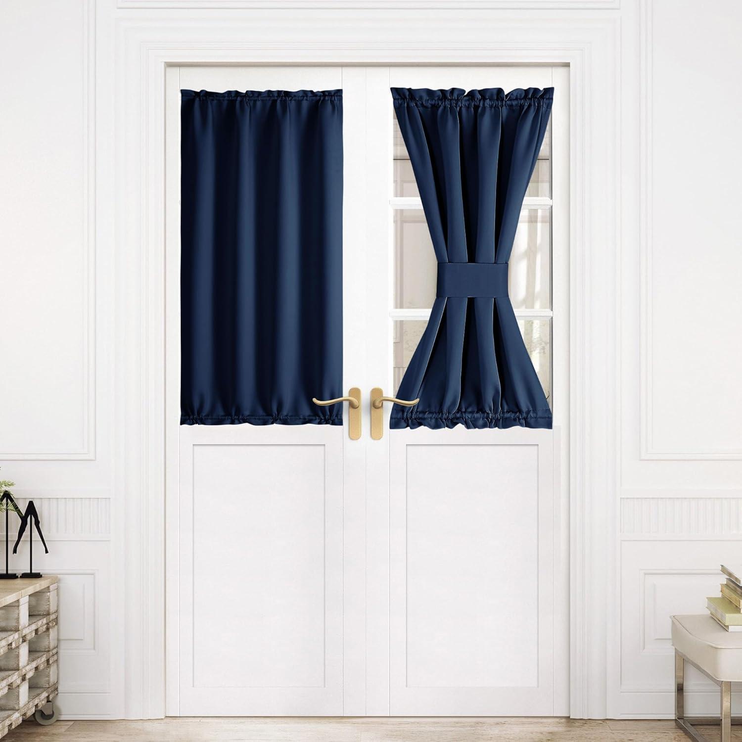 NICETOWN Door Curtain Panel, Grey French Door Curtains Blackout Thermal Insulated Curtain Sidelight Privacy for Window/Living Room/Doorways/Classroom (25W by 72L inches, 1 Panel)(Navy)