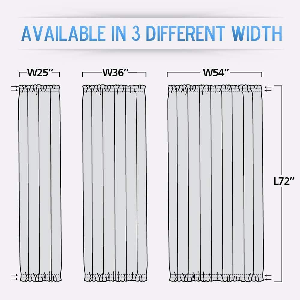 Product Info.: The door curtain package comes with 1 panel. Each panel measuring 25 inches wide by 72 inches long comes with matching adjustable TIEBACK. 2 rod pockets (diameter: 1″ each) on both top and bottom sides give the curtain a nice fit.