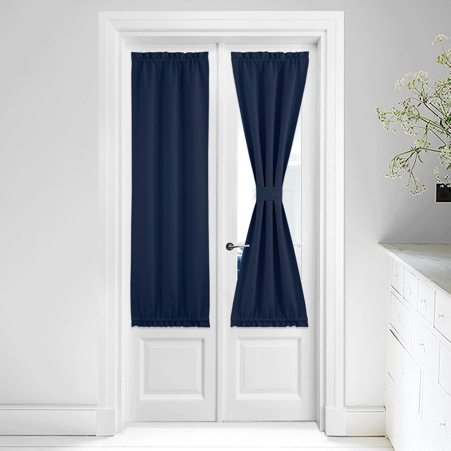 imageNICETOWN Door Curtain Panel Grey French Door Curtains Blackout Thermal Insulated Curtain Sidelight Privacy for WindowLiving RoomDoorwaysClassroom 25W by 72L inches 1 PanelNavy