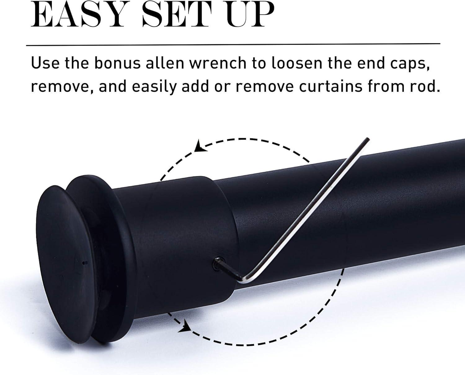 EASY INSTALLATION: Adjustable width design for easily hanging curtains. Unlike normal rod, this tension curtain rod Don't Need Any Tools To Install. Just unscrew them until they are about 1.5″-2″ longer than the area you're putting them in, then squeeze them into place.