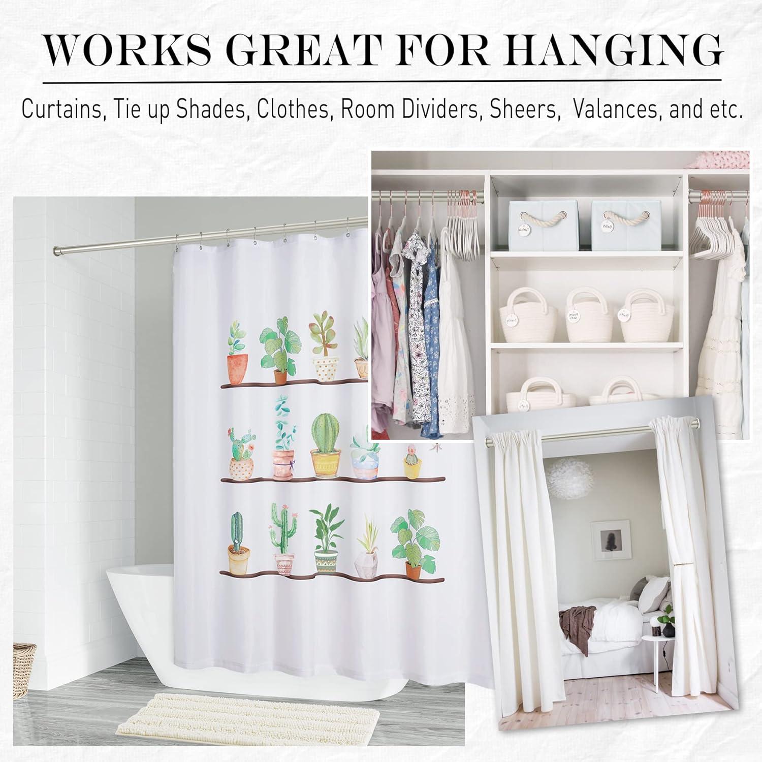 WIDE SCOPE: Tension curtain rod not only can be used as curtains rods, like the shower curtain, doors and windows support rods, drying support rods, but also can be used as closet rods, shoes racks, coat hanger and so on.
