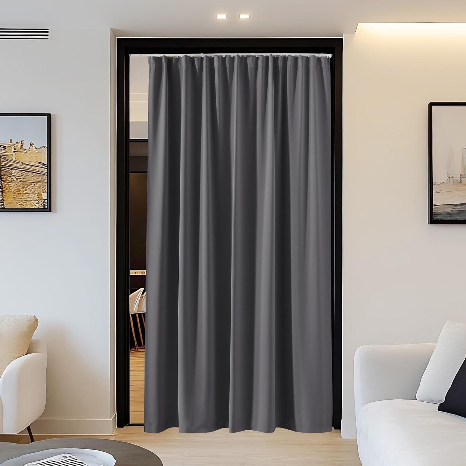 NICETOWN Doorway Curtain & Track Set, Blackout French Door Curtain with Smooth Track for Closet/Bay, Thermal Insulated Temporary Door for Living Room/Bedrrom Privacy, W 34 x L 80 in, Black, 1 Panel(Dove Gray)