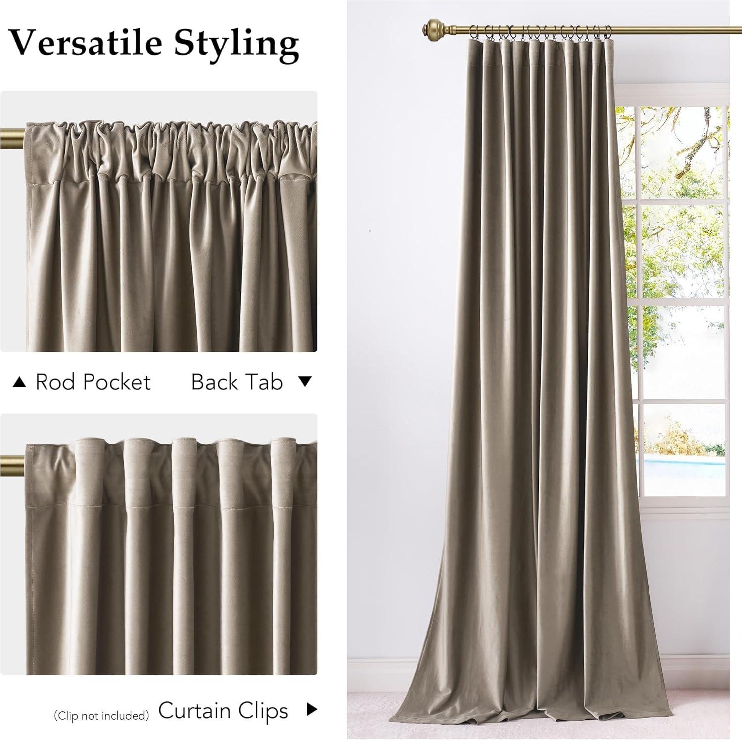 NICETOWN Fall Bronze Blackout 108 inch Length Velvet Curtains Pair, Room Darkening Energy Saving Floor to Ceiling Drapes for Living Room and Bedroom, 52 W x 108 L inch, Support Shower Hooks, 2 Panels(Taupe)