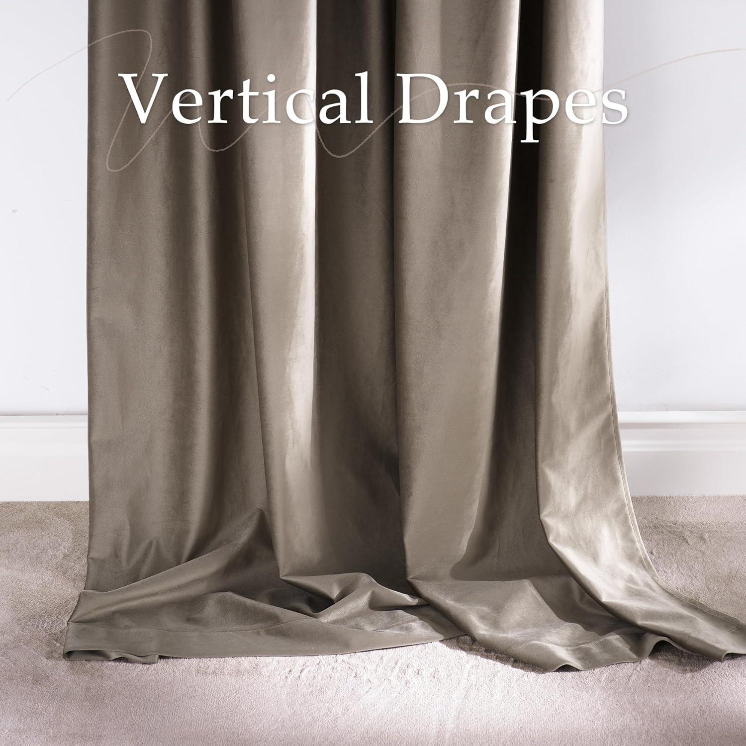 imageNICETOWN Fall Bronze Blackout 108 inch Length Velvet Curtains Pair Room Darkening Energy Saving Floor to Ceiling Drapes for Living Room and Bedroom 52 W x 108 L inch Support Shower Hooks 2 PanelsTaupe