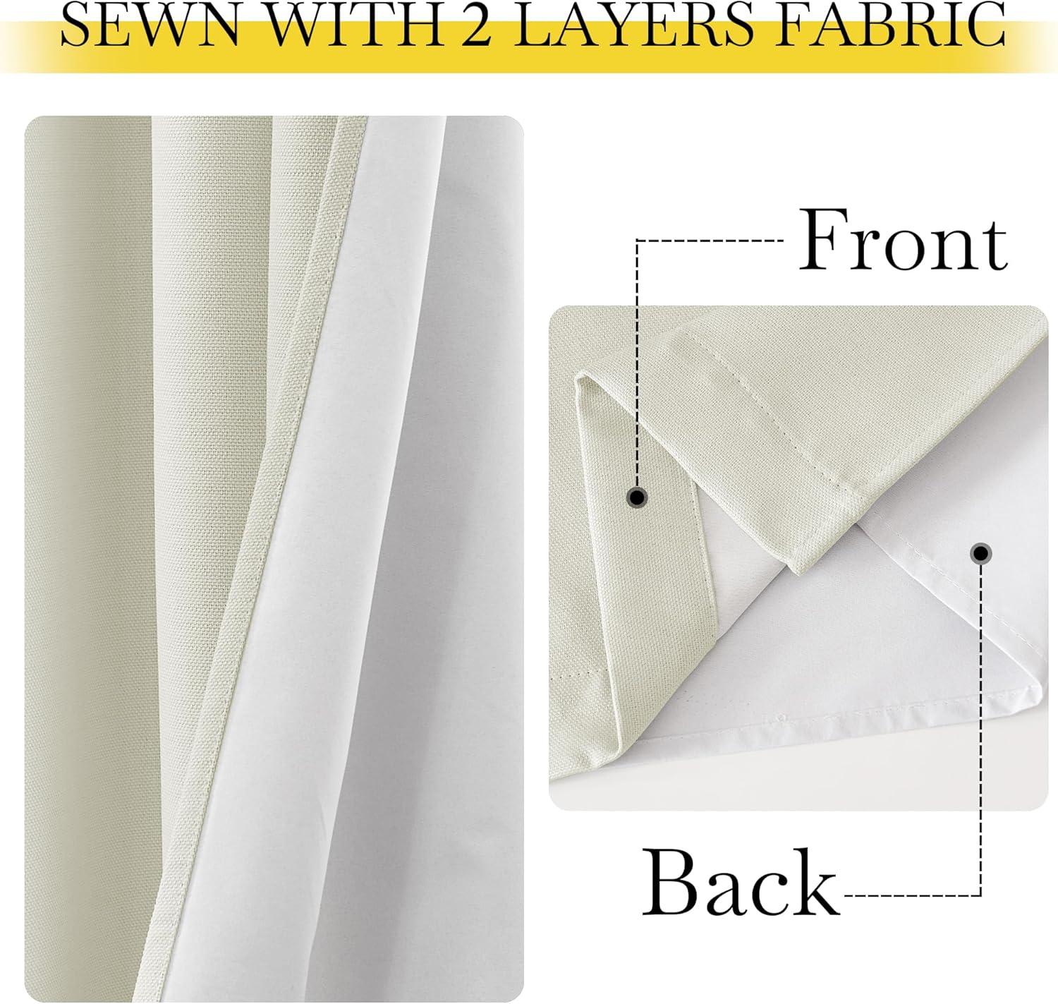 imageNICETOWN Faux Linen 100 Blackout 108 inch Curtains for Bedroom Silver Grommet 2 Layers with White Liner Window Treatments Sound Reducing Drapes for Living Room Natural W52 x L108 2 Panels