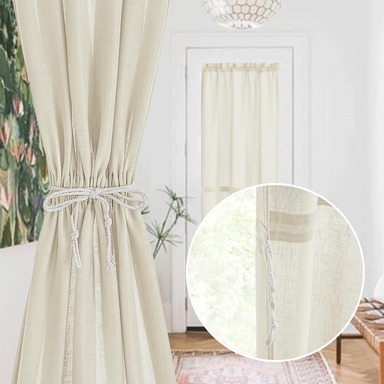 Ready-Made: The package includes 1 panel of 26″W x 72″L linen door curtain with drawstring tieback. These pretty linen sheer door panels feature top and bottom rod pockets for easy installation. It is ideal for a door window that brings French elegance to your room.