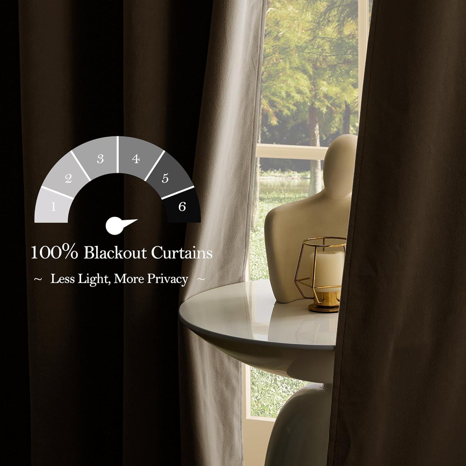 100% Blackout: The velvet curtains can block 100% of sun light, protect from harmful UV rays and provide privacy. Luxurious velvet curtains enhances any room's decor with smooth touch, offering a refined and elegant look for living room, bedroom, sliding glass door, home theater and kids room.