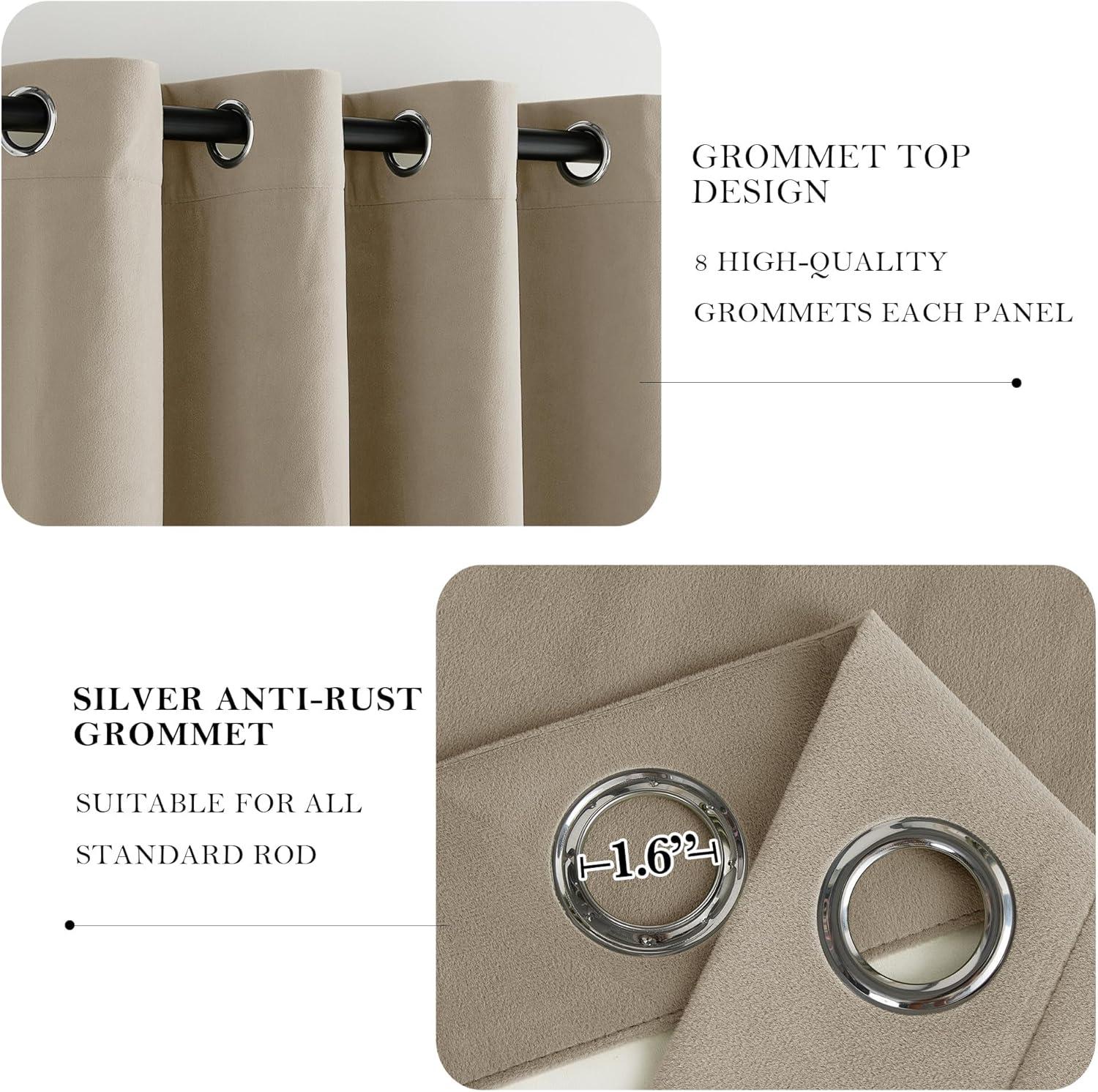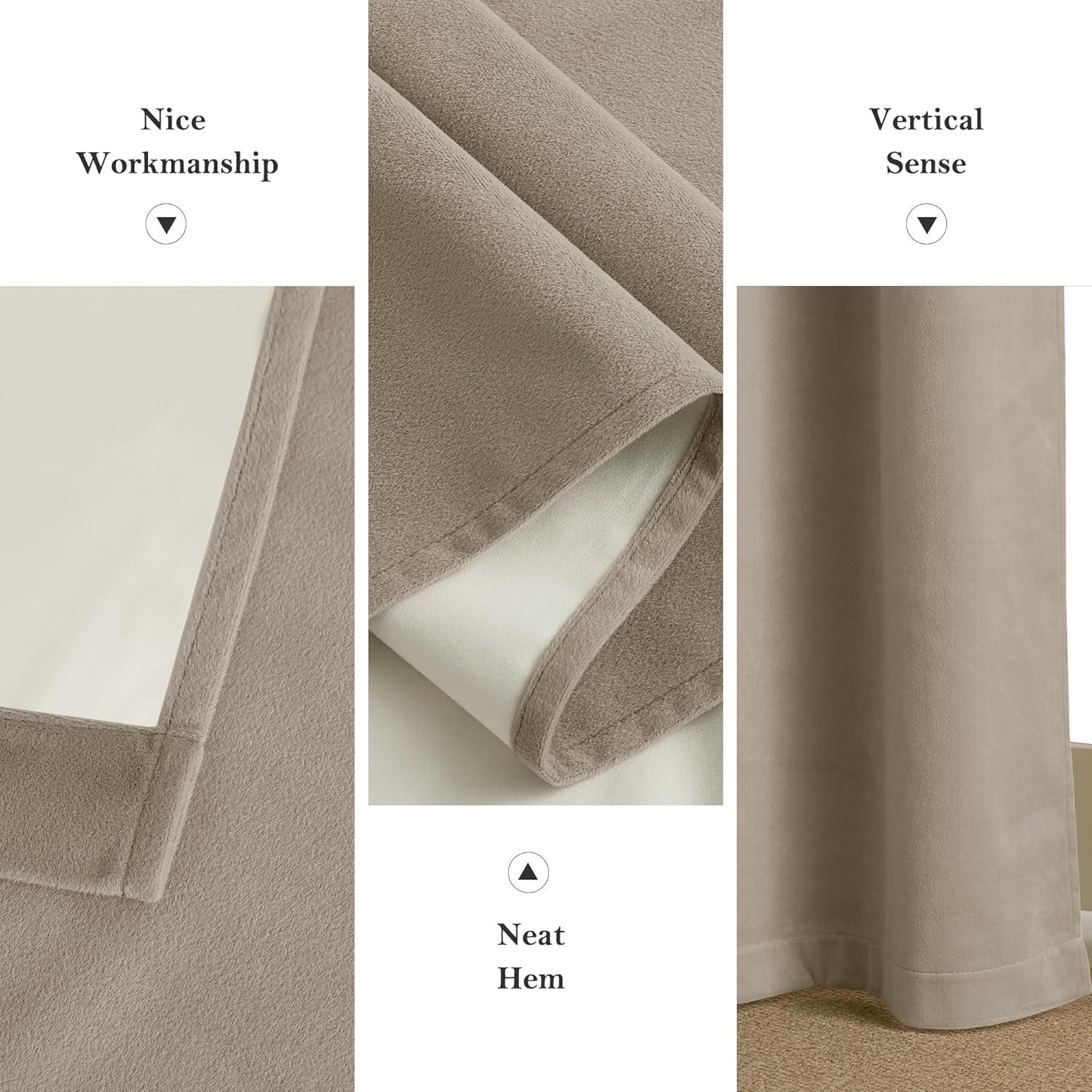 imageNICETOWN Full Blackout Dusty Pink Velvet Curtains 8 Feet Long for Bedroom Elegant Grommet Drapes Thermal Insulated Energy Saving Soundproof Room Darkening Window Treatment for Living Room 52 WKhaki