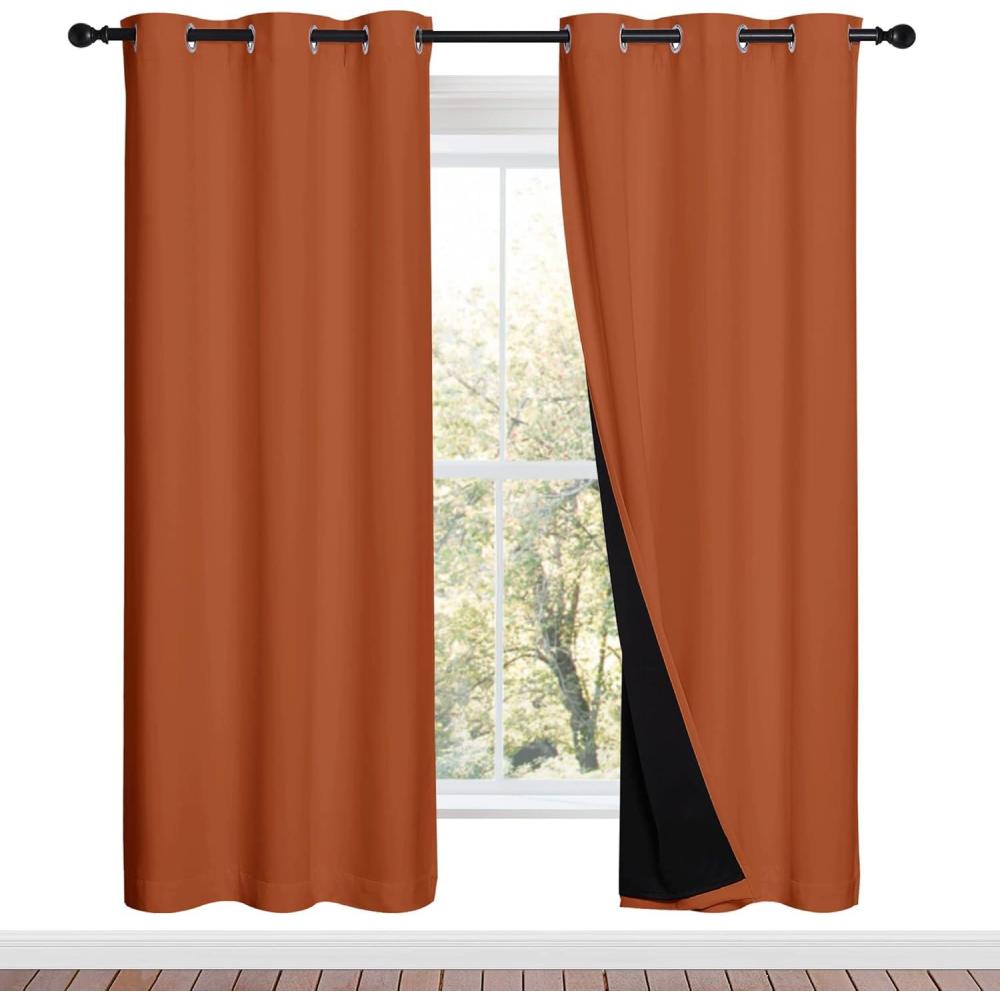 100% BLACKOUT: The real blackout curtains on the market. Sew in black liner backing makes the drapes thick enough to completely keep out the 100% SUNLIGHT and UV RAY. The greatest benefit is to offer you a real dark environment, bringing you a good night's sleep during the day.