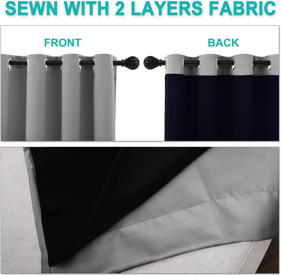 100% BLACKOUT: The real blackout curtains on the market. Sew in black liner backing makes the drapes thick enough to completely keep out the 100% SUNLIGHT and UV RAY. The greatest benefit is to offer you a real dark environment, bringing you a good night's sleep during the day.