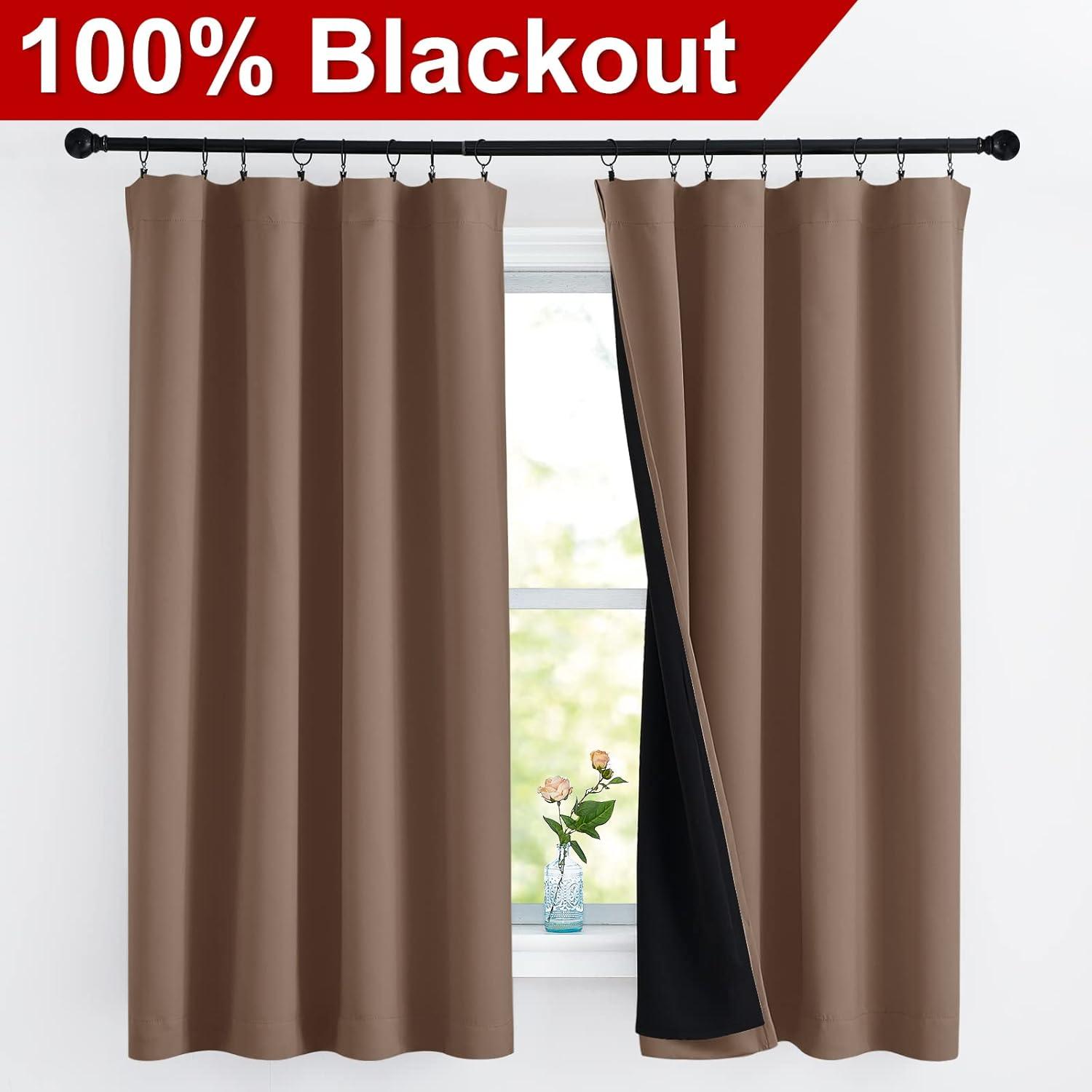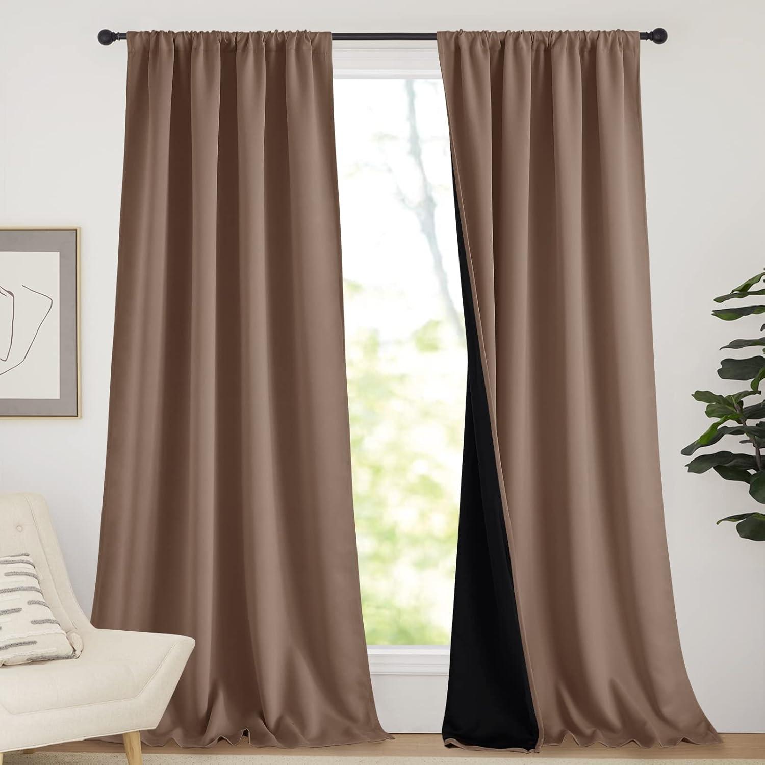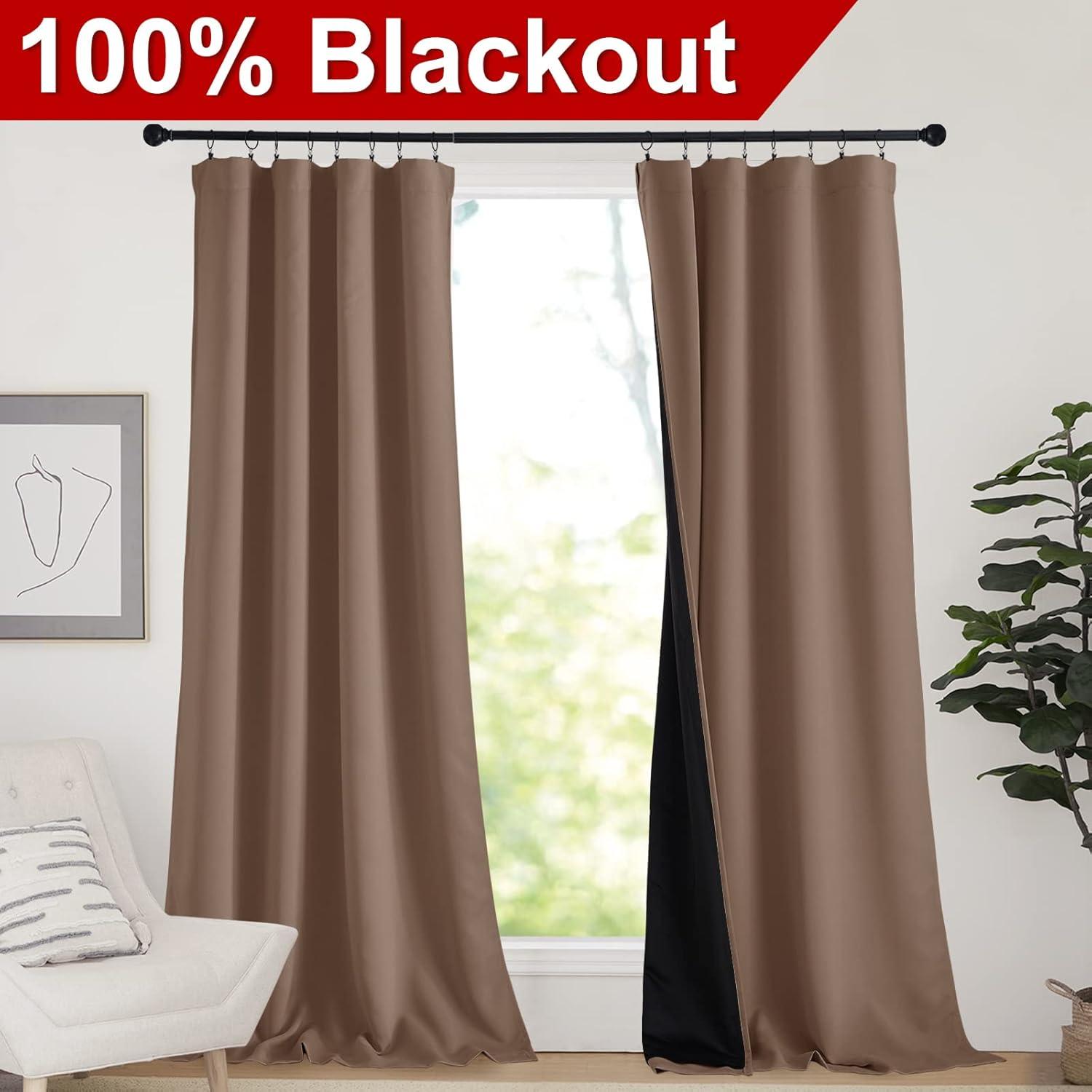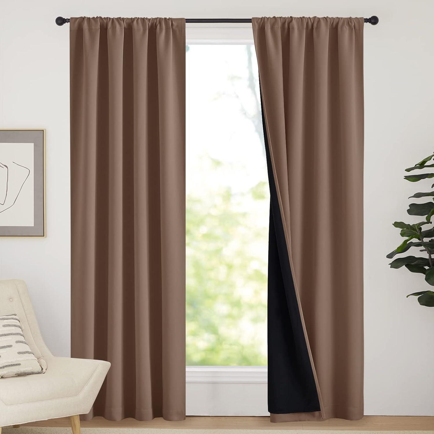 NICETOWN Full Shade Curtain Panels, Pair of Energy Smart Rod Pocket Blackout Drapes for Guest Room Window, Thermal Insulated Guest Room Lined Window Dressing(Silver Grey, 52 x 72 inch)(Cappuccino)