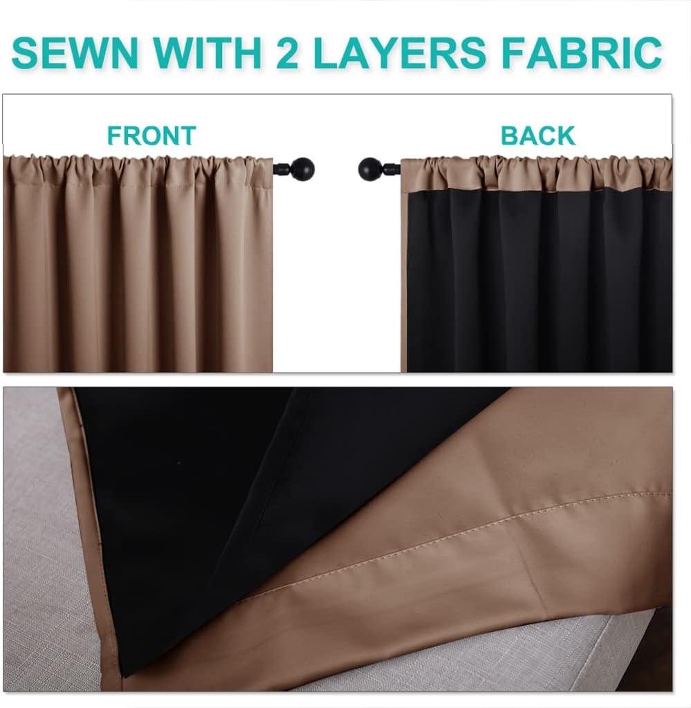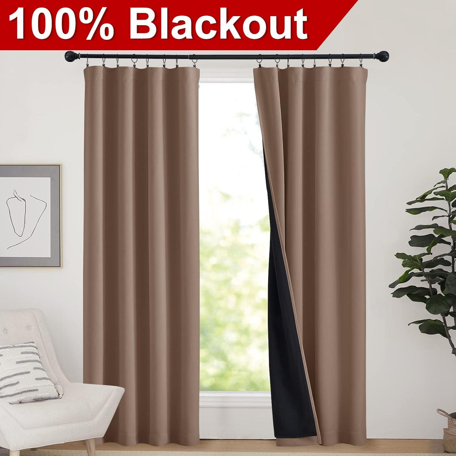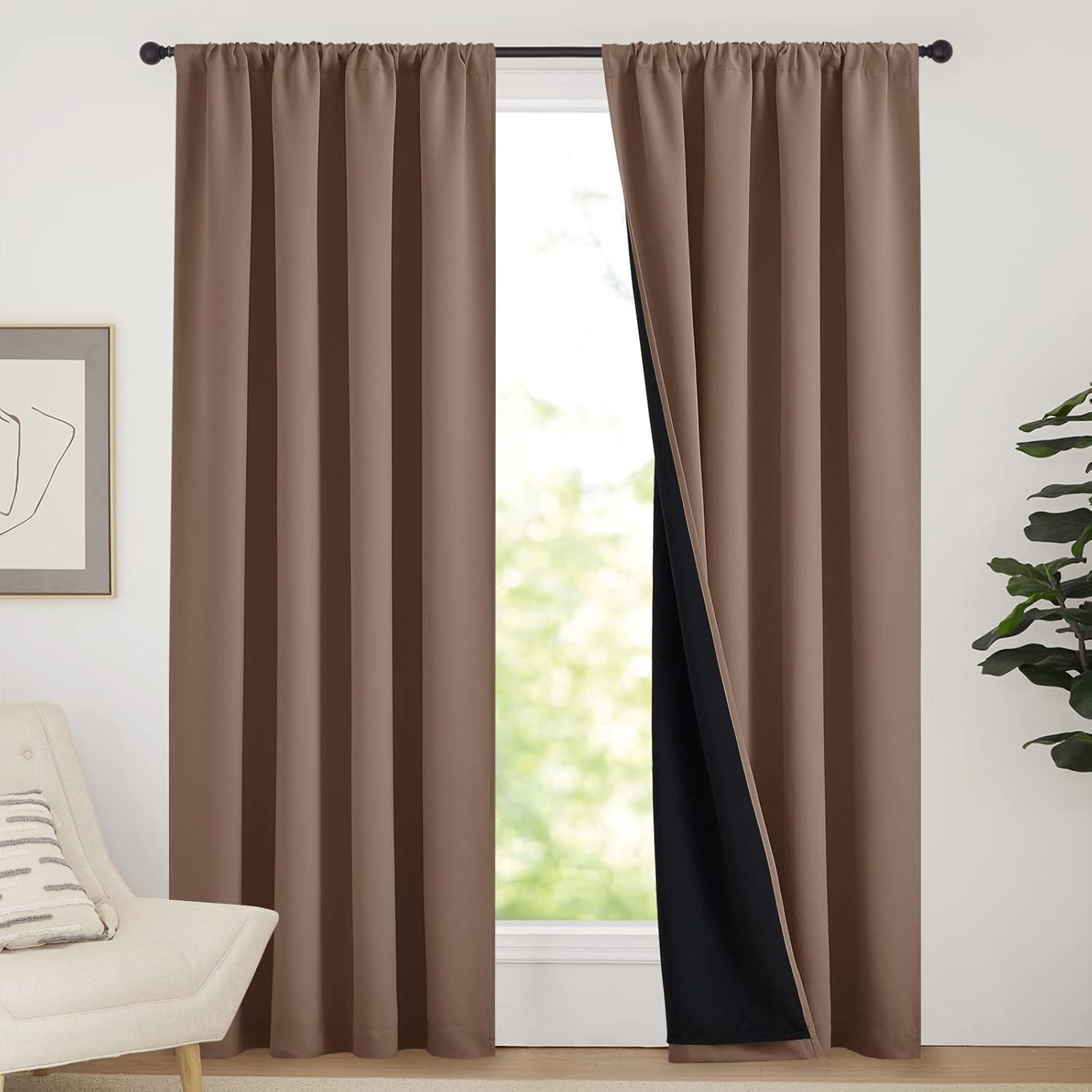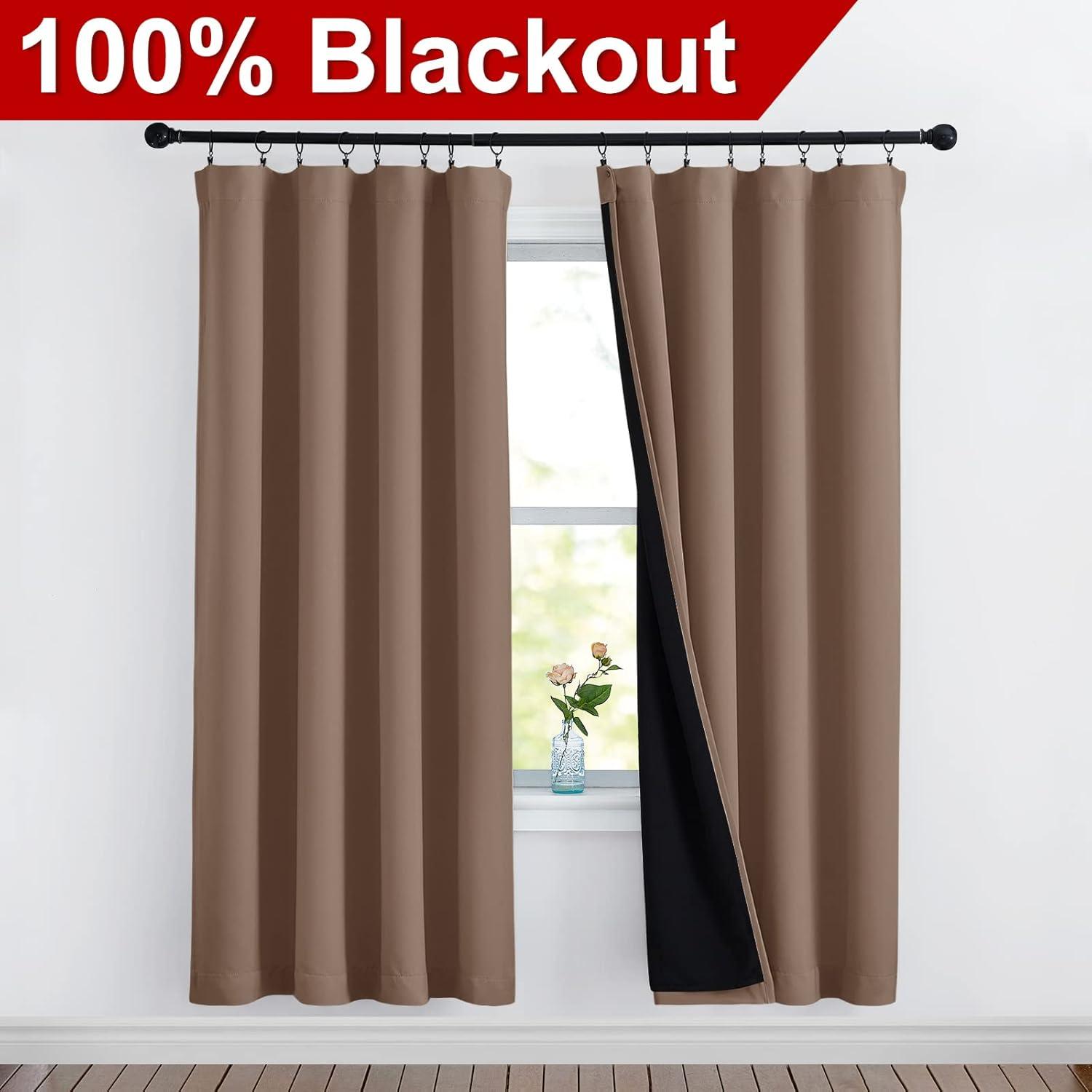 NICETOWN Full Shade Curtain Panels, Pair of Energy Smart Rod Pocket Blackout Drapes for Guest Room Window, Thermal Insulated Guest Room Lined Window Dressing(Silver Grey, 52 x 72 inch)(Cappuccino)