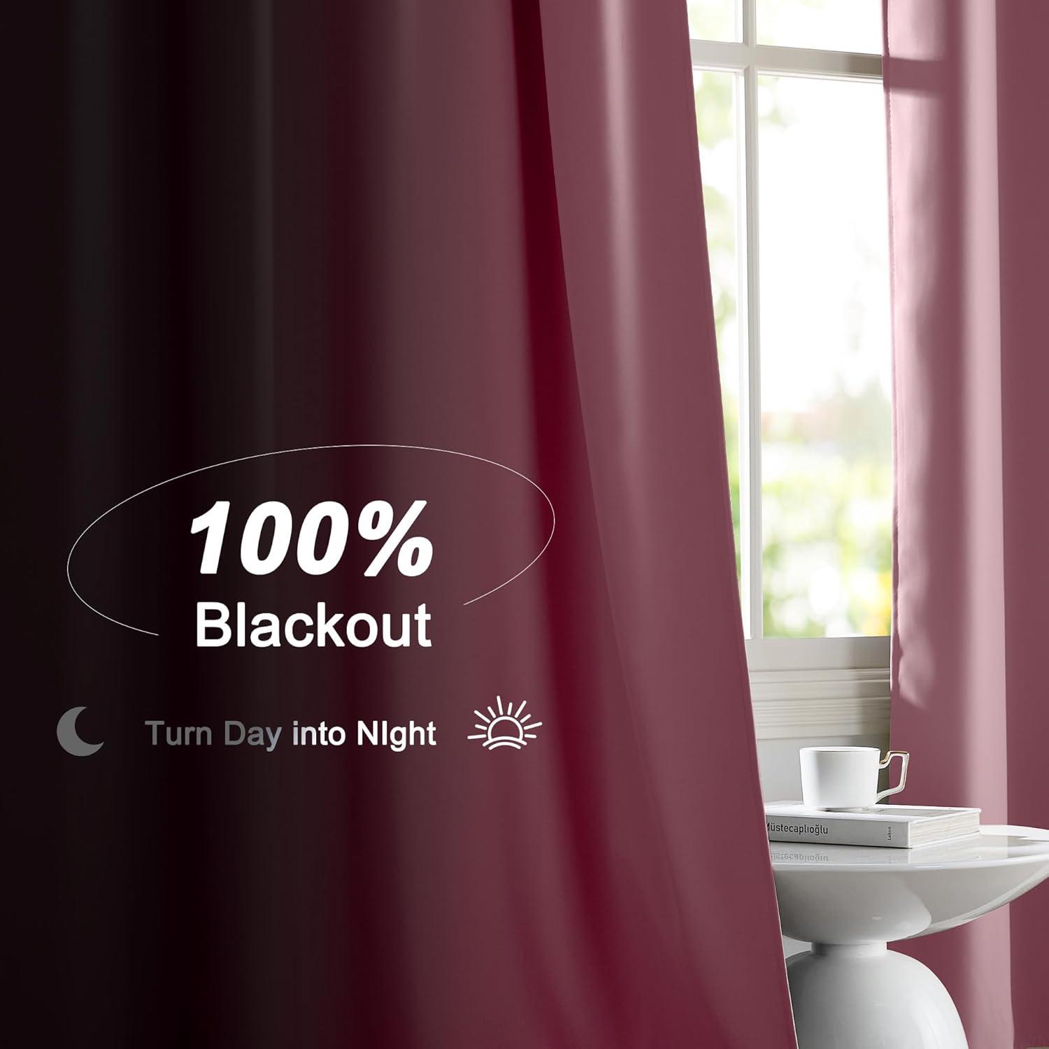 NICETOWN Full Shade Curtain Panels, Pair of Energy Smart Rod Pocket Blackout Drapes for Guest Room Window, Thermal Insulated Guest Room Lined Window Dressing(Silver Grey, 52 x 72 inch)(Crystal Pink)