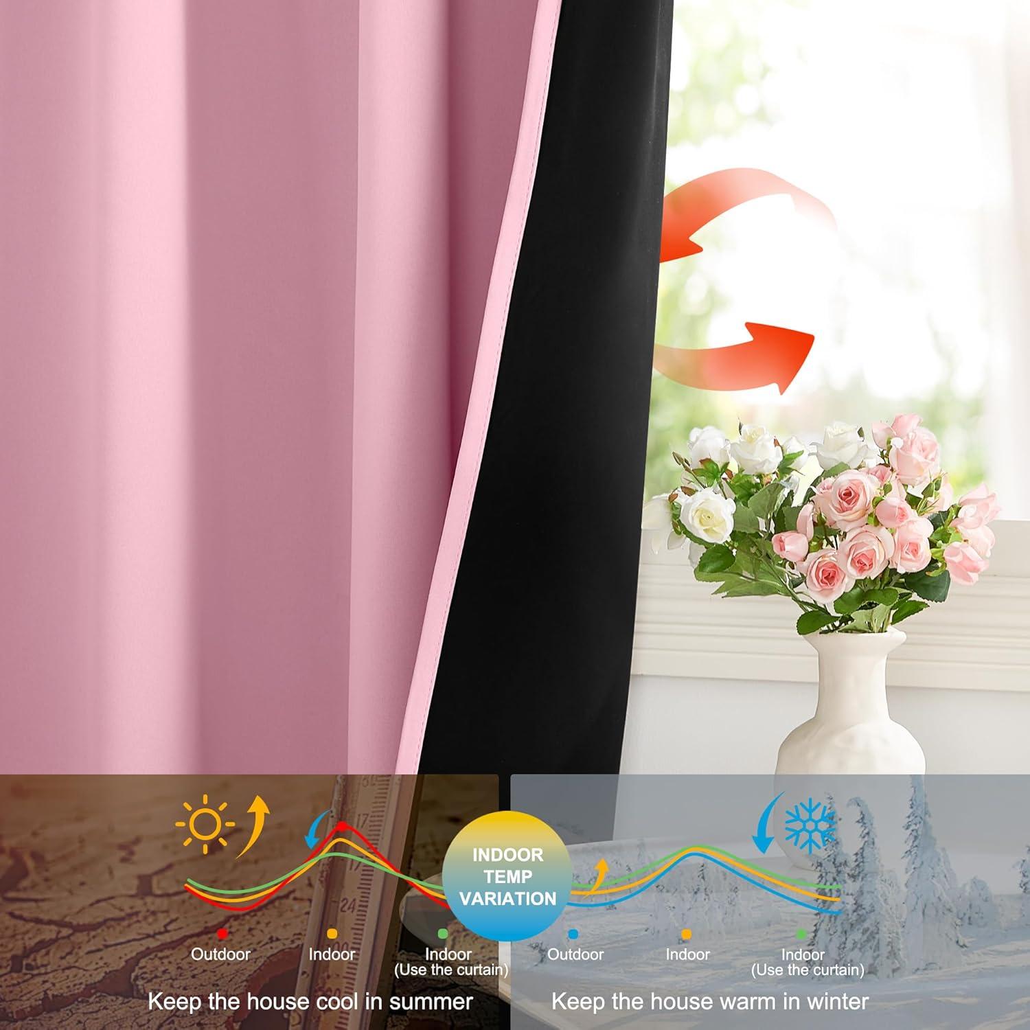 imageNICETOWN Full Shade Curtain Panels Pair of Energy Smart Rod Pocket Blackout Drapes for Guest Room Window Thermal Insulated Guest Room Lined Window DressingSilver Grey 52 x 72 inchCrystal Pink