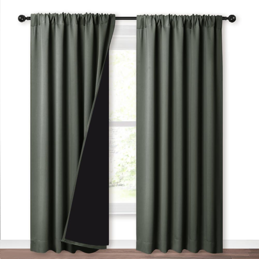 NICETOWN Full Shade Curtain Panels, Pair of Energy Smart Rod Pocket Blackout Drapes for Guest Room Window, Thermal Insulated Guest Room Lined Window Dressing(Silver Grey, 52 x 72 inch)(Dark Mallard)