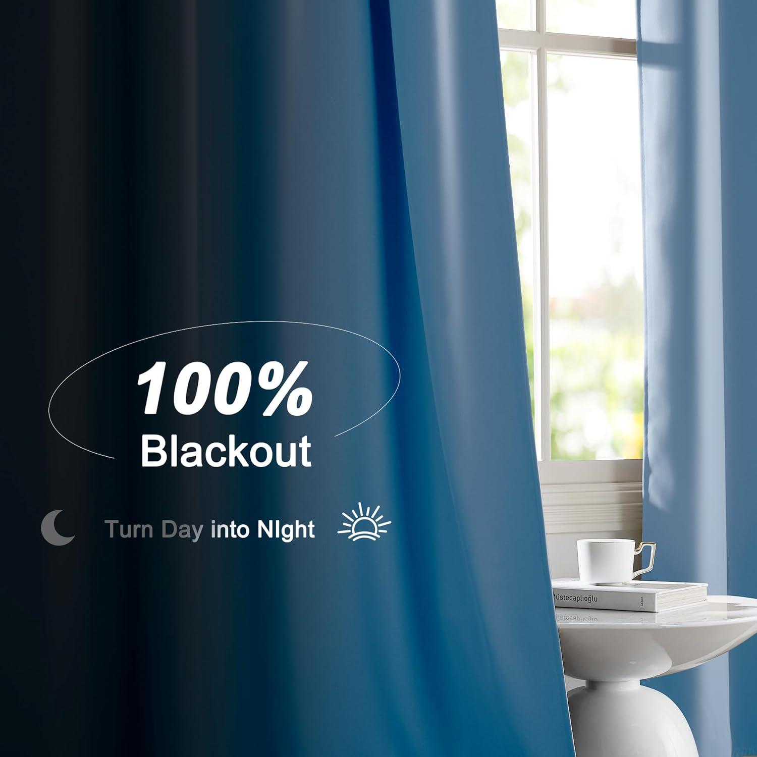 NICETOWN Full Shade Curtain Panels, Pair of Energy Smart Rod Pocket Blackout Drapes for Guest Room Window, Thermal Insulated Guest Room Lined Window Dressing(Silver Grey, 52 x 72 inch)(Vintage Blue)