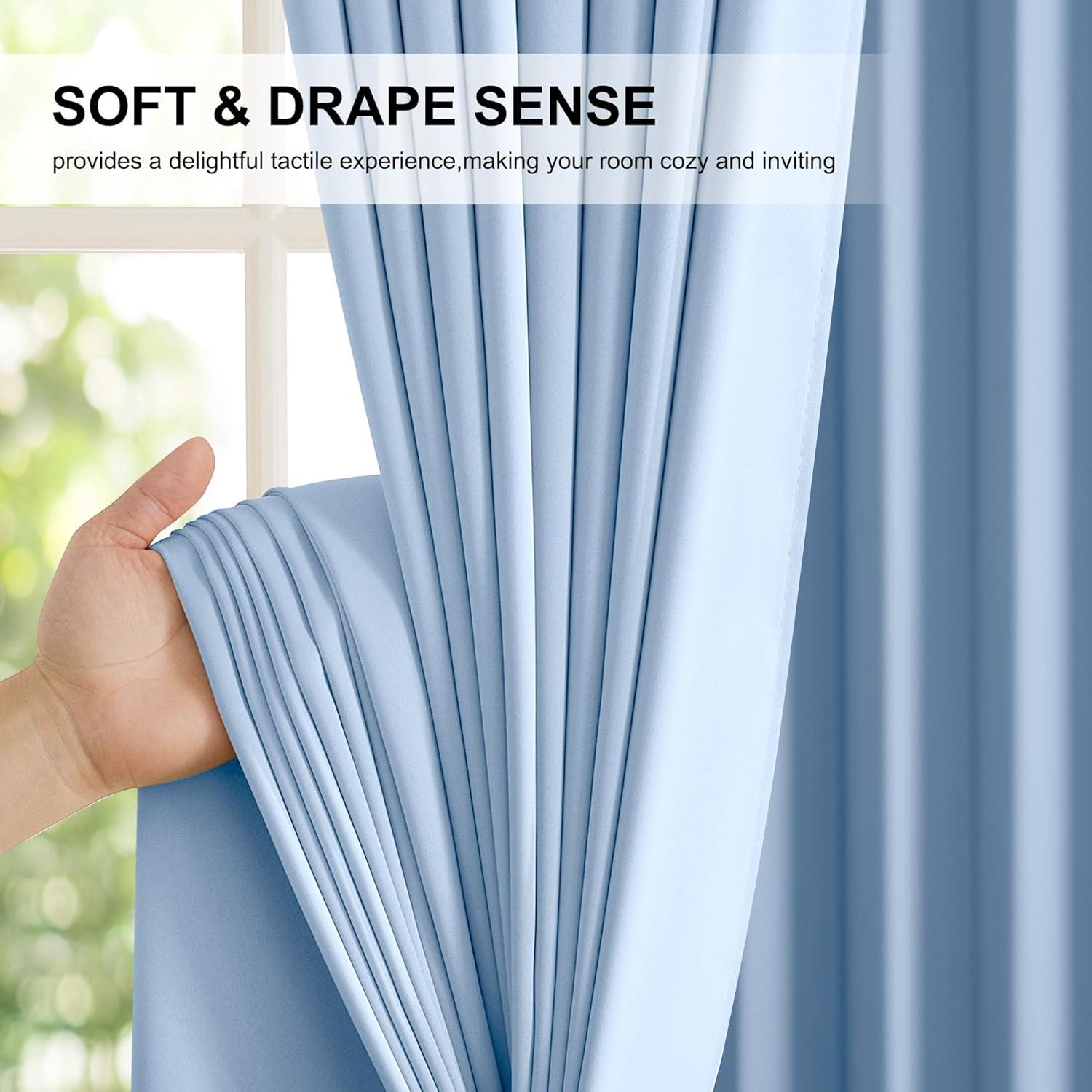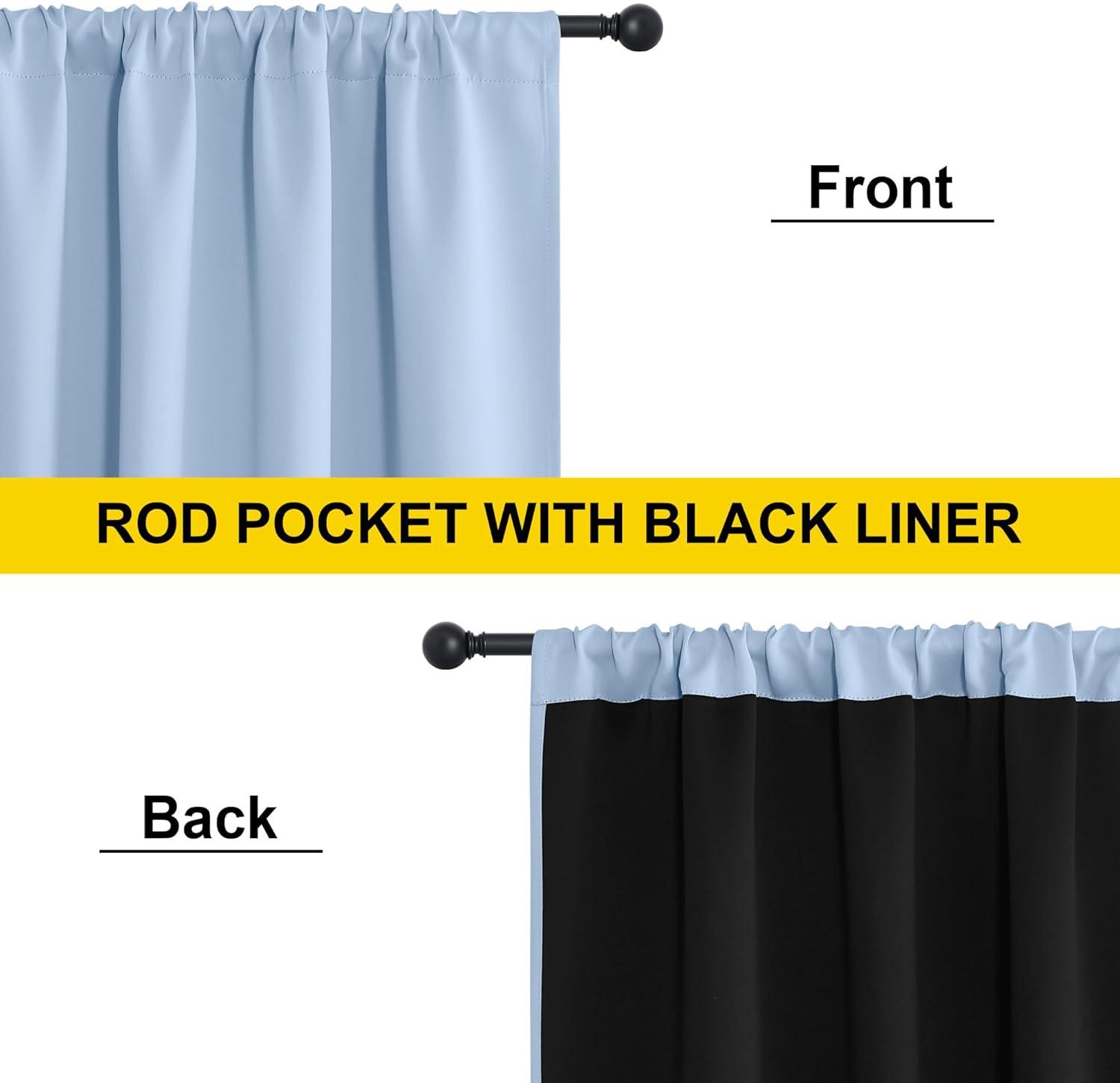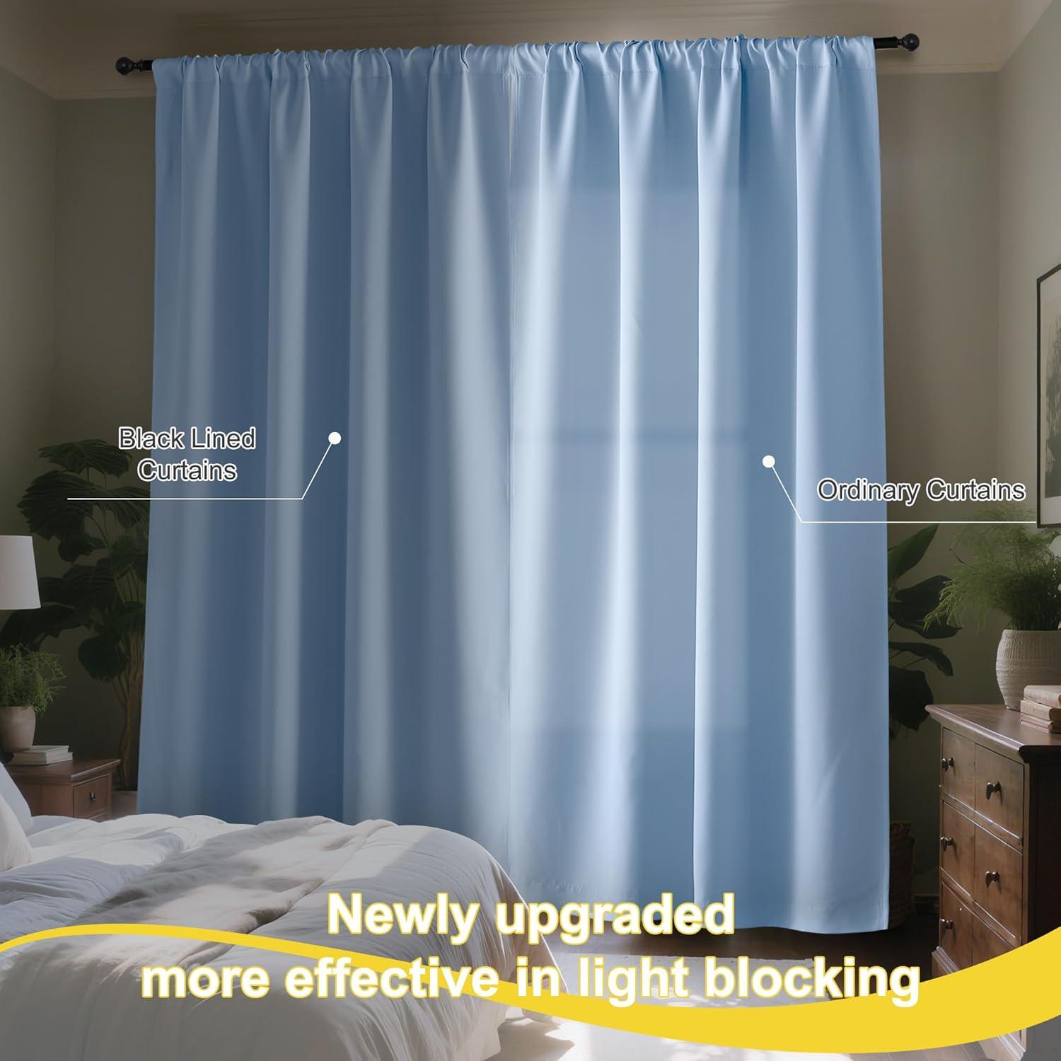 100% Blackout: Sew in black liner backing makes the drapes thick enough to completely keep out the 100% SUNLIGHT and UV RAY. The greatest benefit is to offer you a real dark environment, bringing you a good night's sleep during the day.