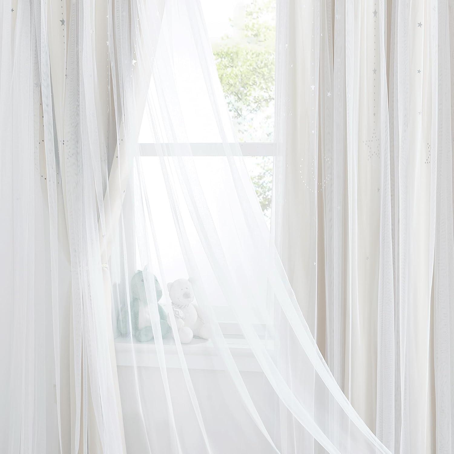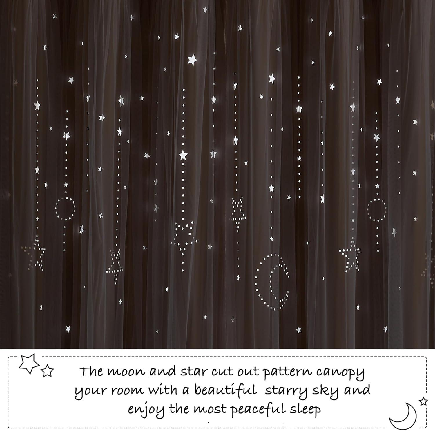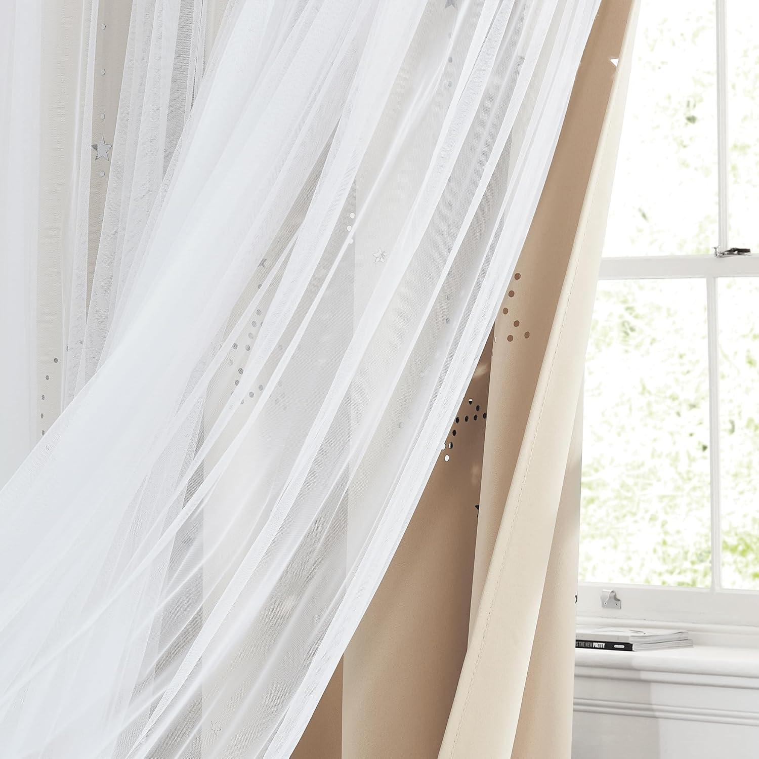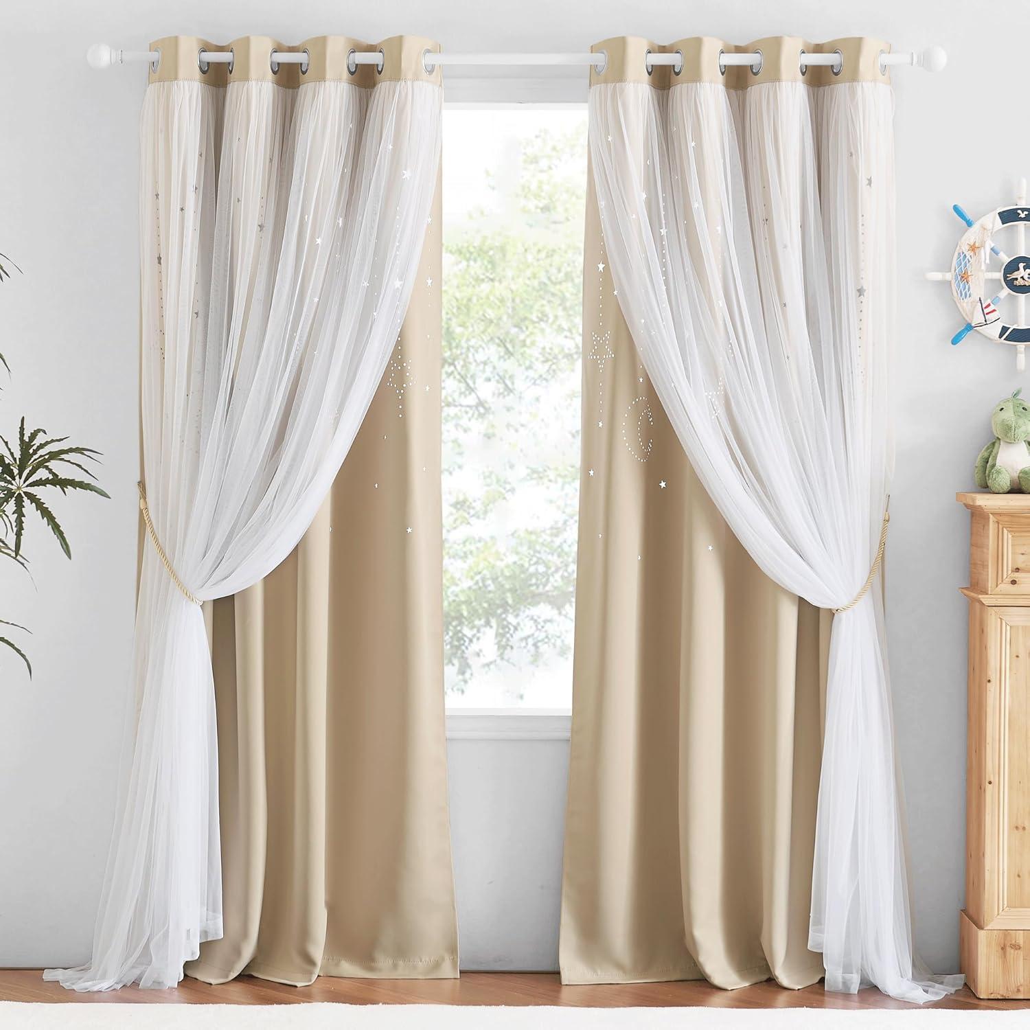 imageNICETOWN Girls Curtains for Bedroom Kids Room Decor White Mosquito Net amp Blackout Ombre Drapes Mix amp Match Star Cut Curtain Panels for Nursery Teal amp Purple Each is W52 x L84 Sold by 2 PCsMoon Star  Biscotti Beige