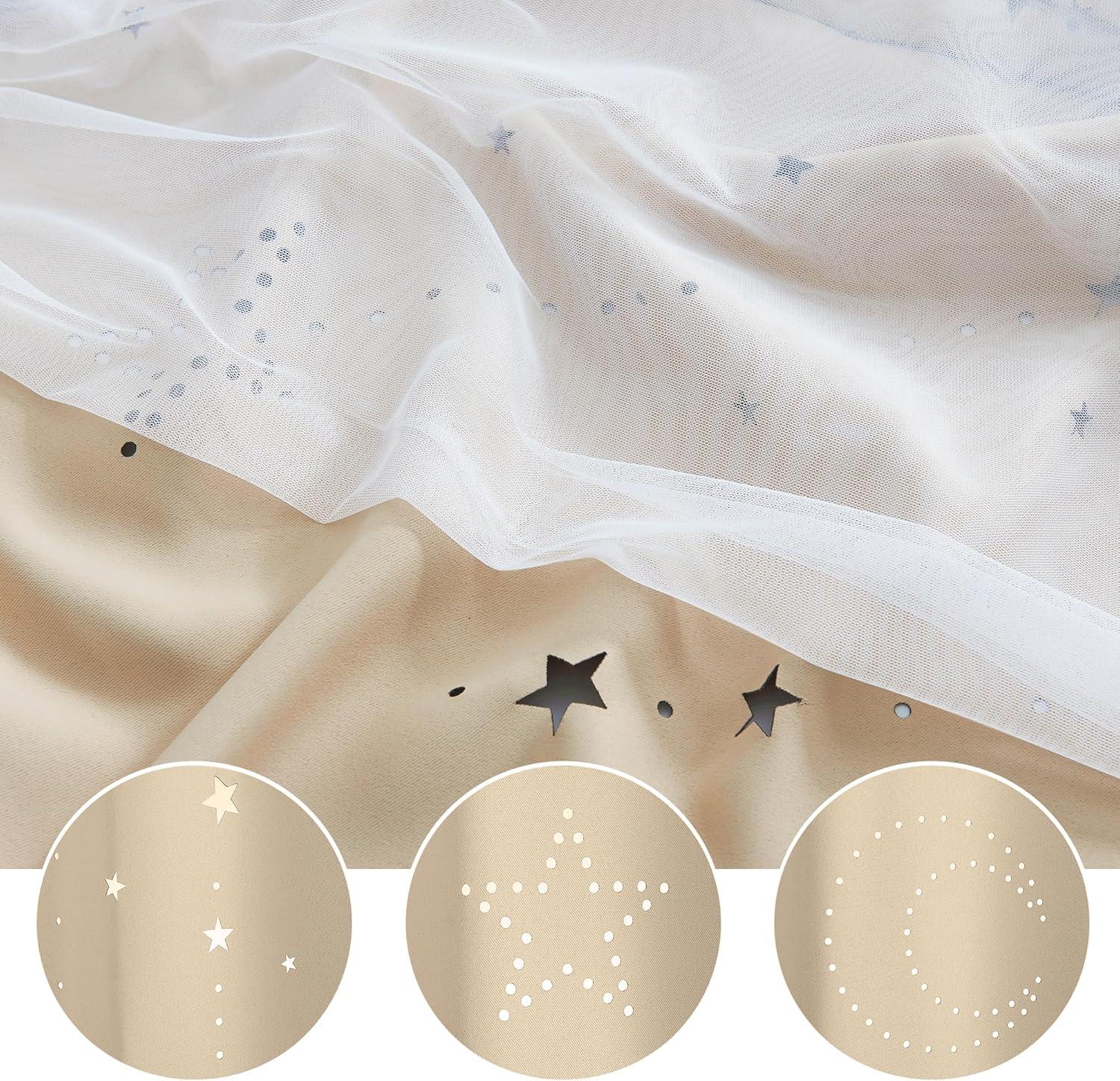 NICETOWN Girls Curtains for Bedroom Kids Room Decor White Mosquito Net & Blackout Ombre Drapes, Mix & Match Star Cut Curtain Panels for Nursery (Teal & Purple, Each is W52 x L84, Sold by 2 PCs)(Moon Star | Biscotti Beige)