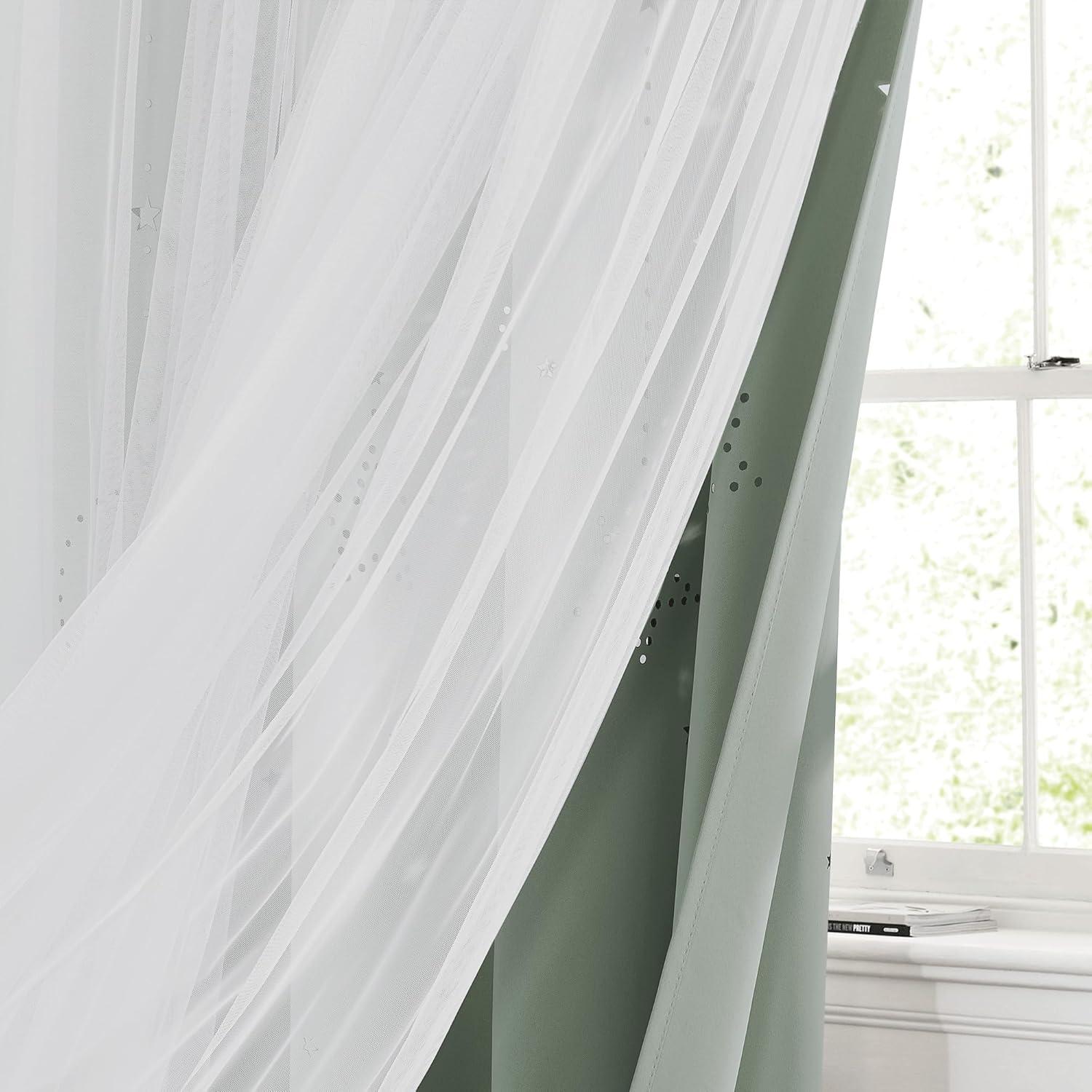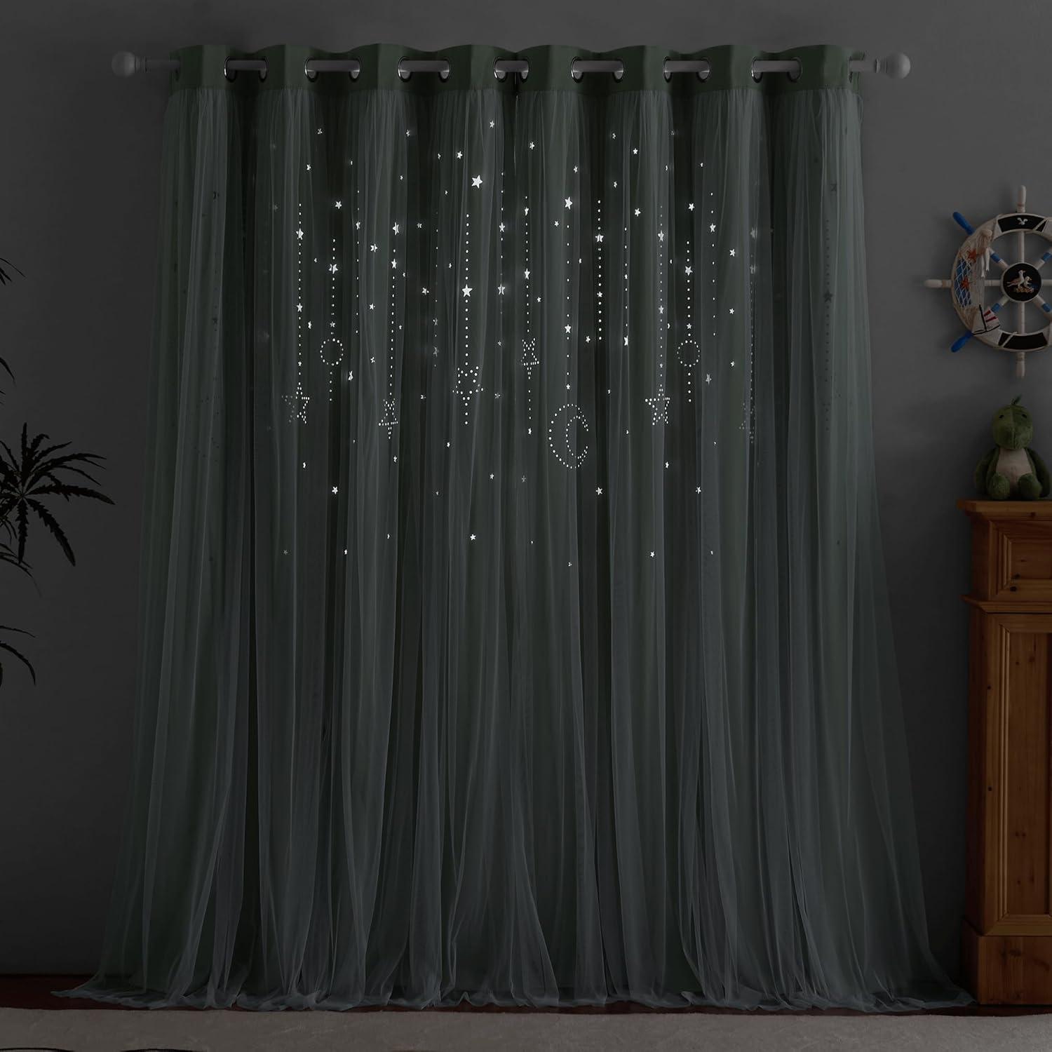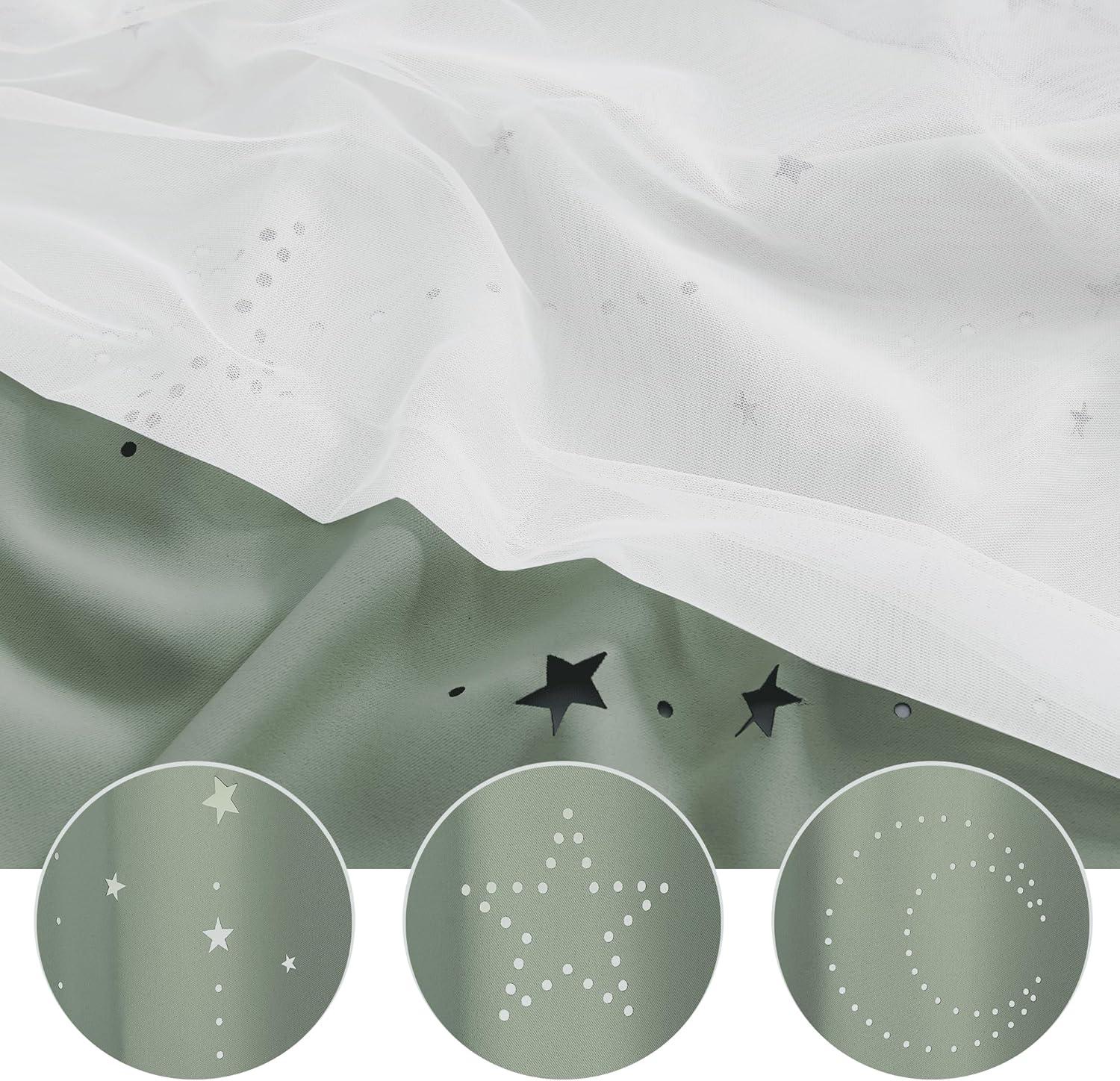 imageNICETOWN Girls Curtains for Bedroom Kids Room Decor White Mosquito Net amp Blackout Ombre Drapes Mix amp Match Star Cut Curtain Panels for Nursery Teal amp Purple Each is W52 x L84 Sold by 2 PCsMoon Star  Sage Green