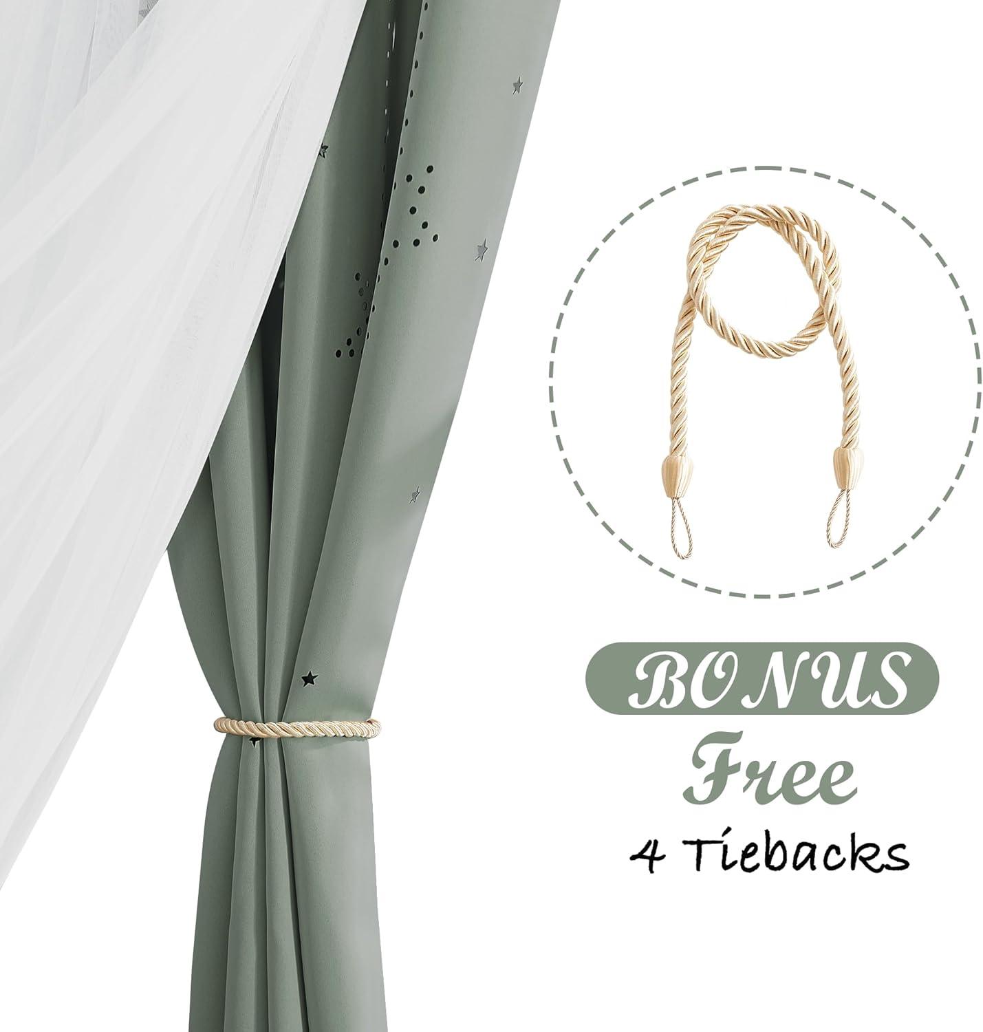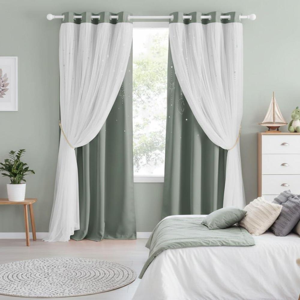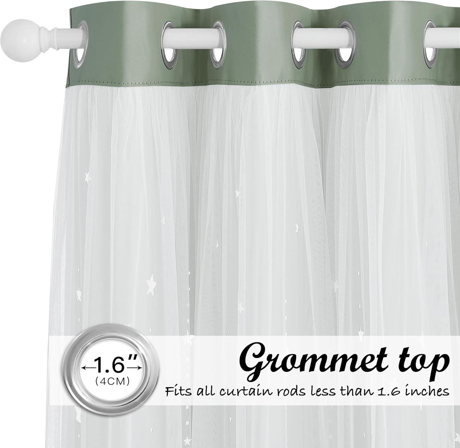 imageNICETOWN Girls Curtains for Bedroom Kids Room Decor White Mosquito Net amp Blackout Ombre Drapes Mix amp Match Star Cut Curtain Panels for Nursery Teal amp Purple Each is W52 x L84 Sold by 2 PCsMoon Star  Sage Green