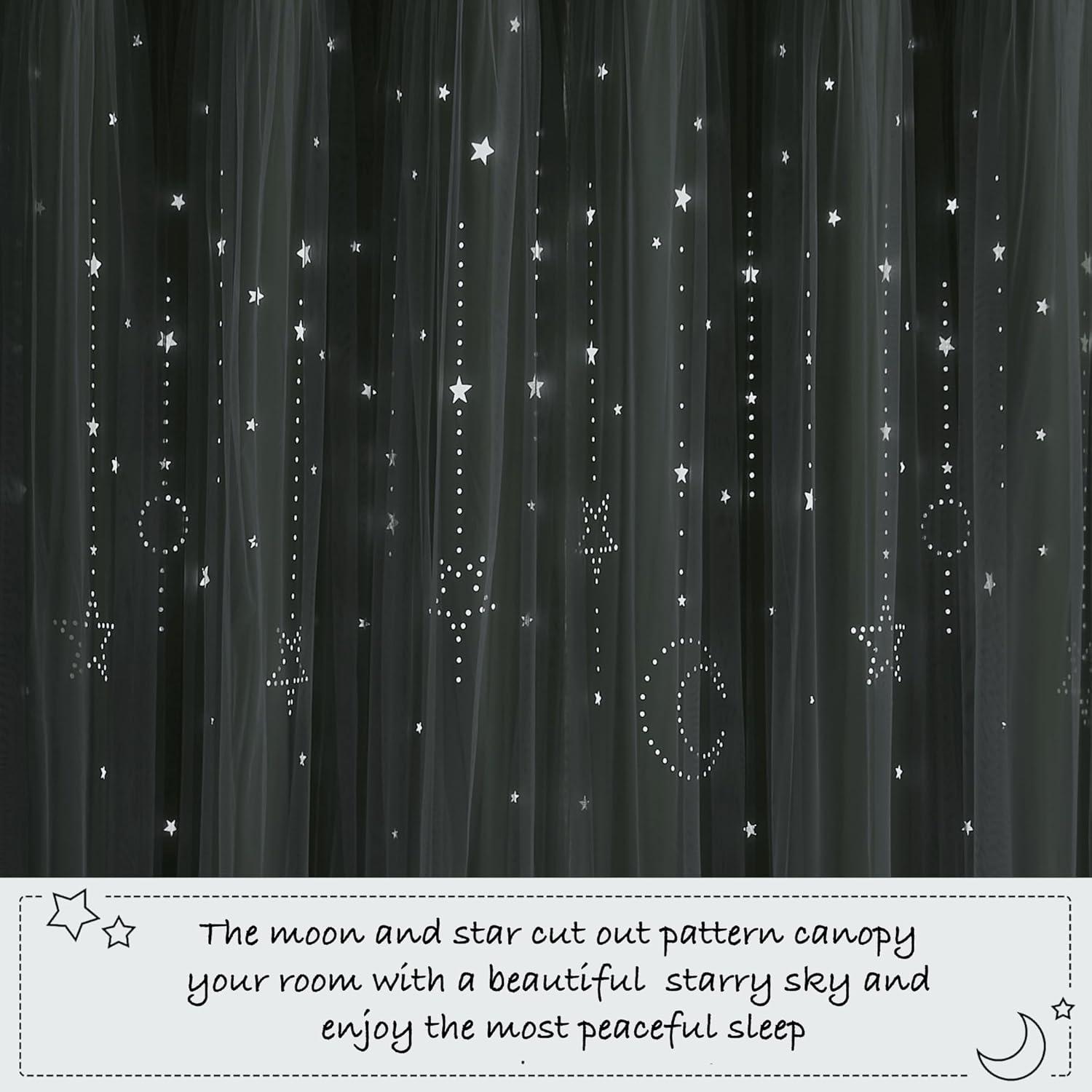 imageNICETOWN Girls Curtains for Bedroom Kids Room Decor White Mosquito Net amp Blackout Ombre Drapes Mix amp Match Star Cut Curtain Panels for Nursery Teal amp Purple Each is W52 x L84 Sold by 2 PCsMoon Star  Stone Blue