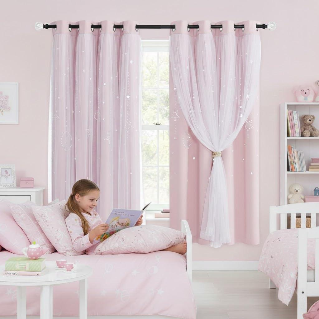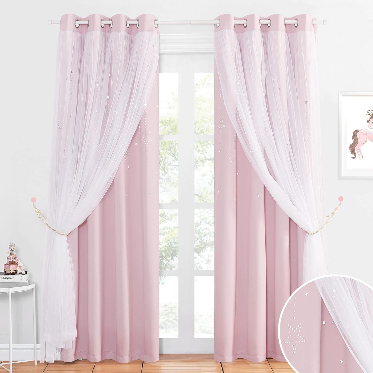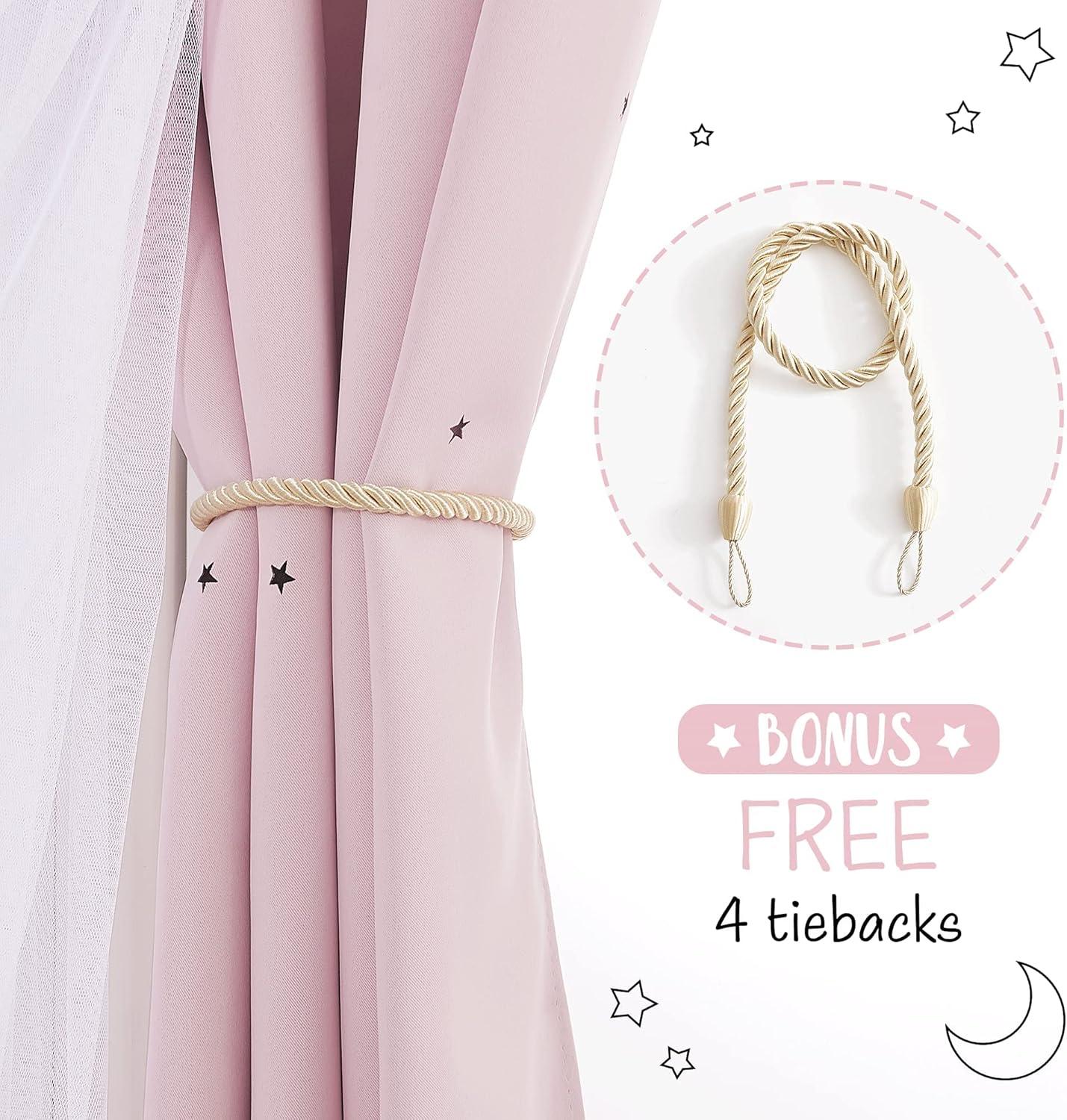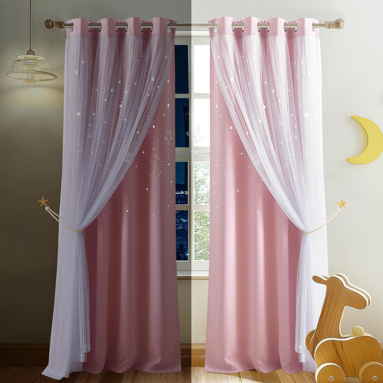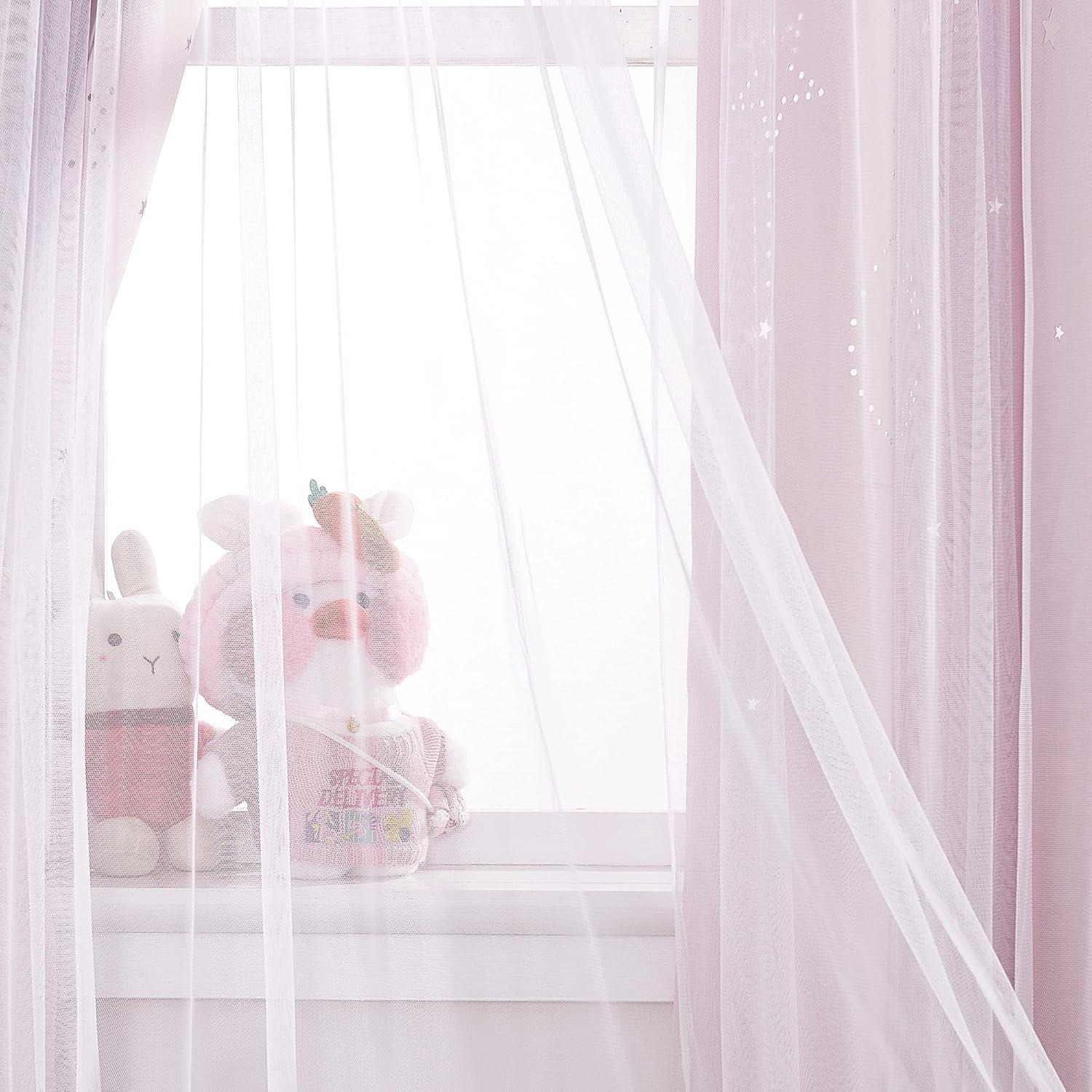 imageNICETOWN Girls Curtains for Bedroom Kids Room Decor White Mosquito Net amp Blackout Ombre Drapes Mix amp Match Star Cut Curtain Panels for Nursery Teal amp Purple Each is W52 x L84 Sold by 2 PCsMoon Star  Baby Pink