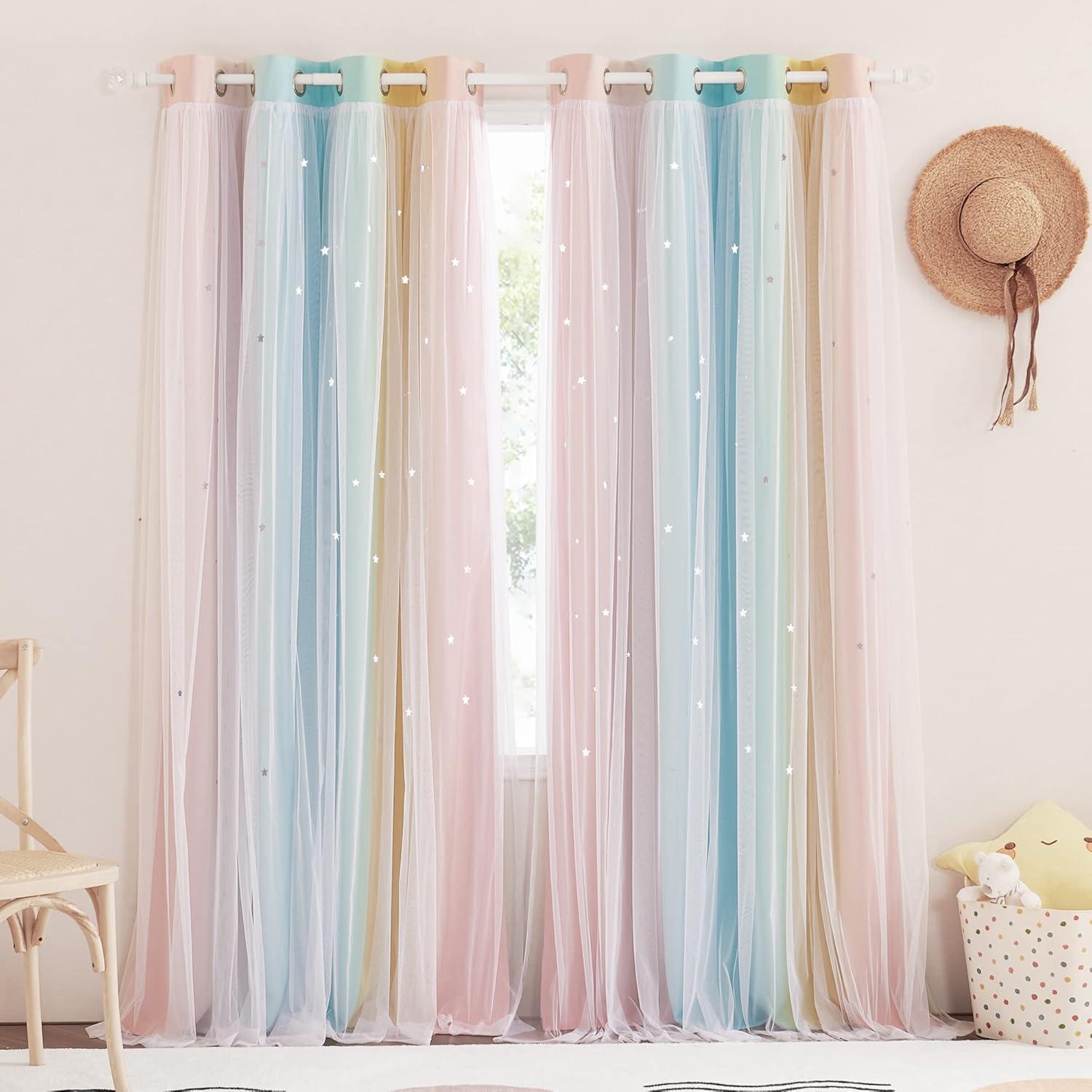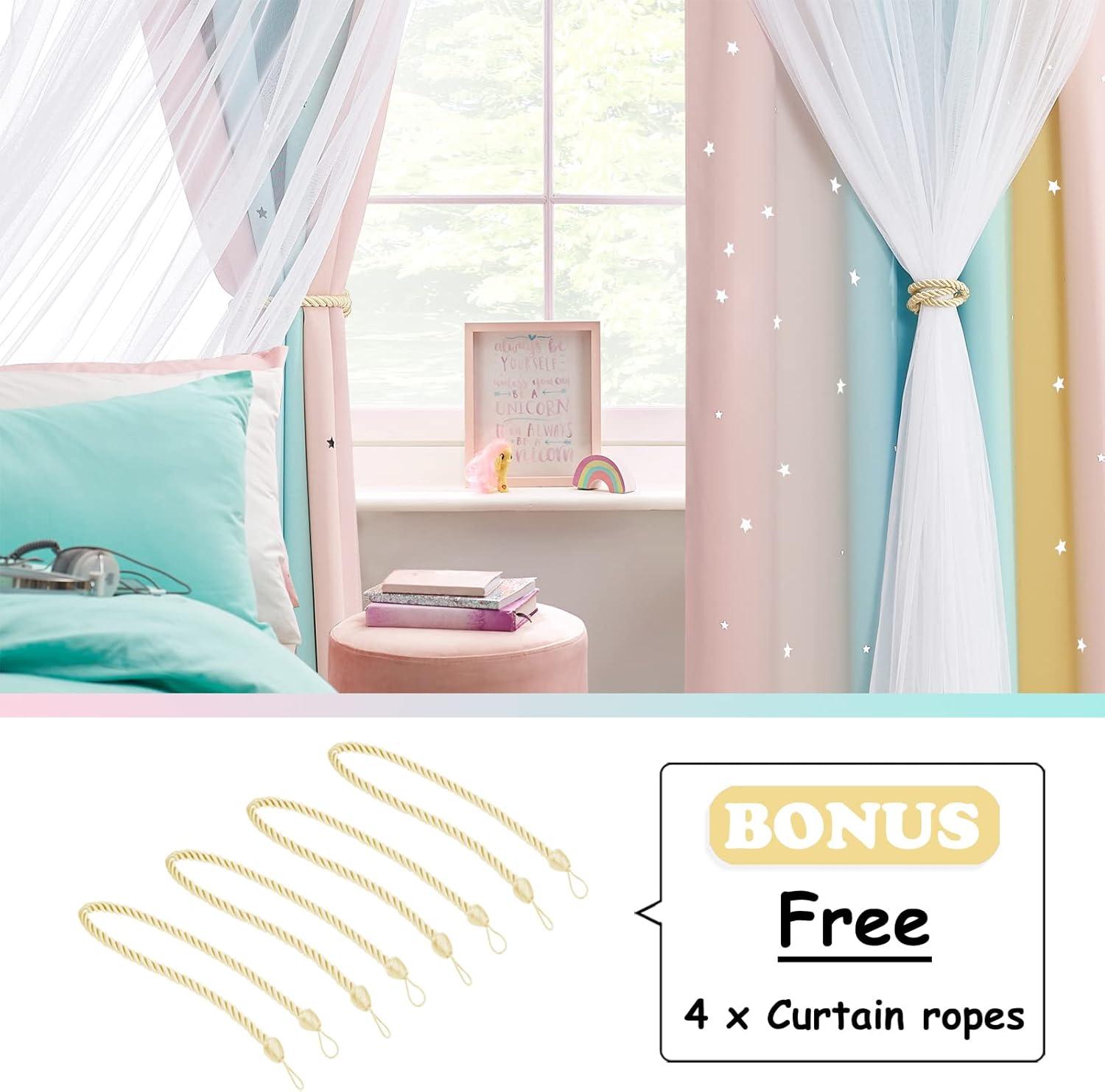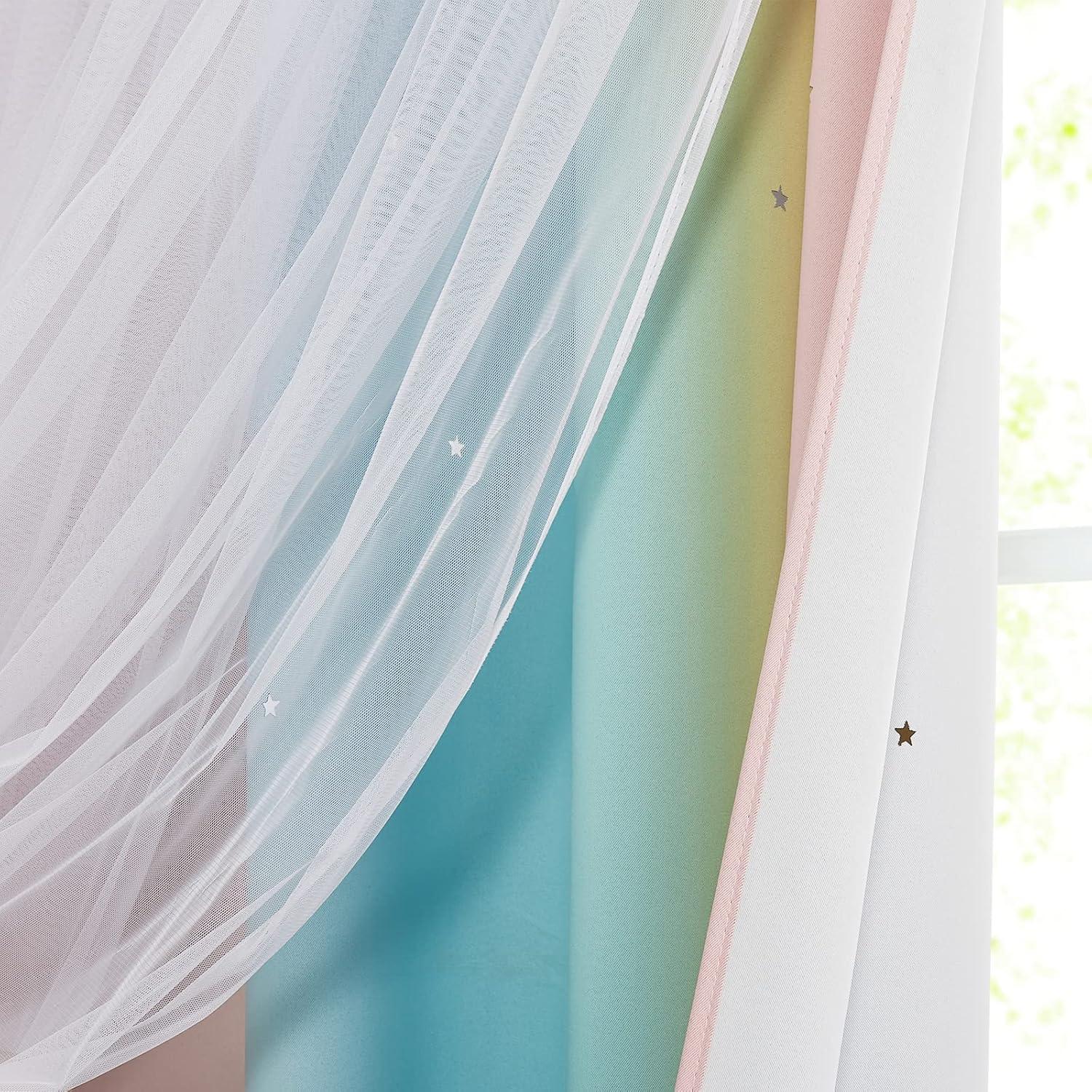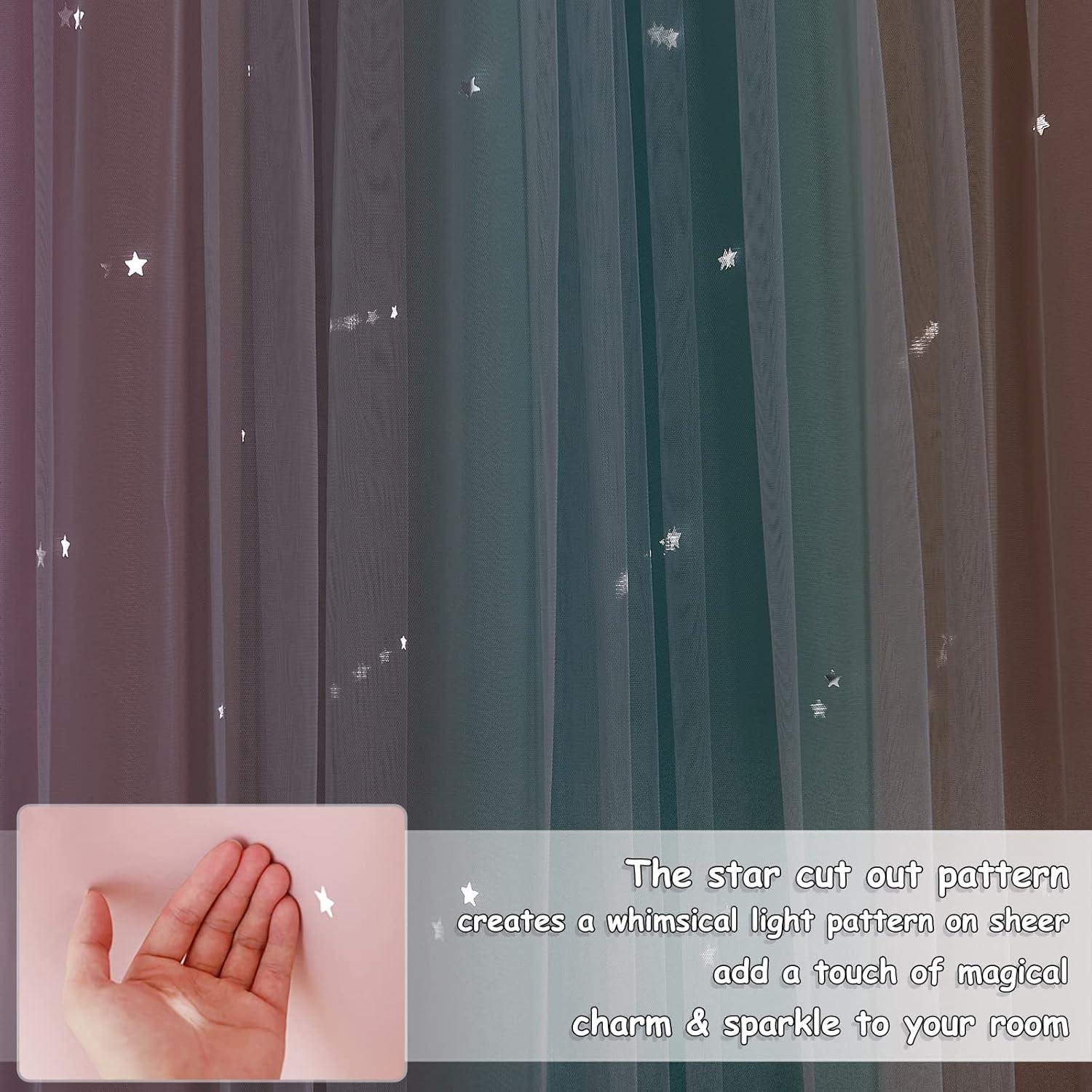 NICETOWN Girls Curtains for Bedroom Kids Room Decor White Mosquito Net & Blackout Ombre Drapes, Mix & Match Star Cut Curtain Panels for Nursery (Teal & Purple, Each is W52 x L84, Sold by 2 PCs)(Pink & Yellow & Green & Pink)