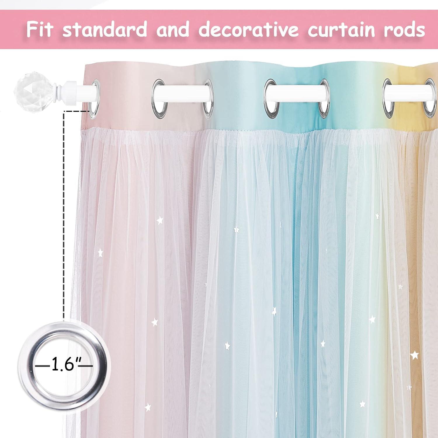 imageNICETOWN Girls Curtains for Bedroom Kids Room Decor White Mosquito Net amp Blackout Ombre Drapes Mix amp Match Star Cut Curtain Panels for Nursery Teal amp Purple Each is W52 x L84 Sold by 2 PCsPink  Yellow  Green  Pink
