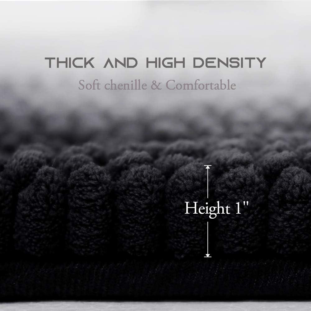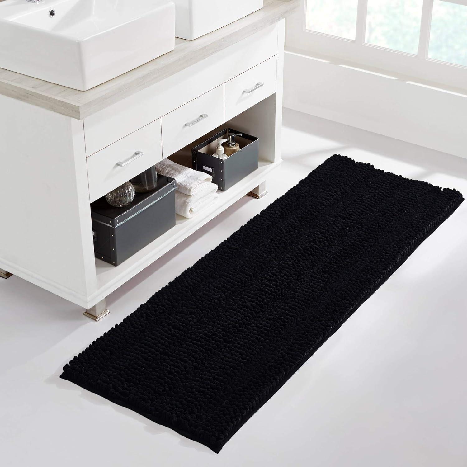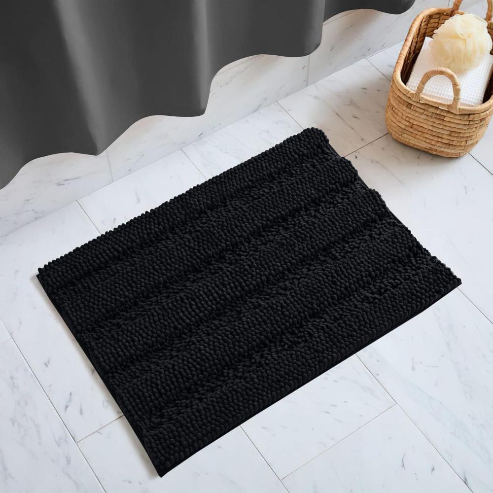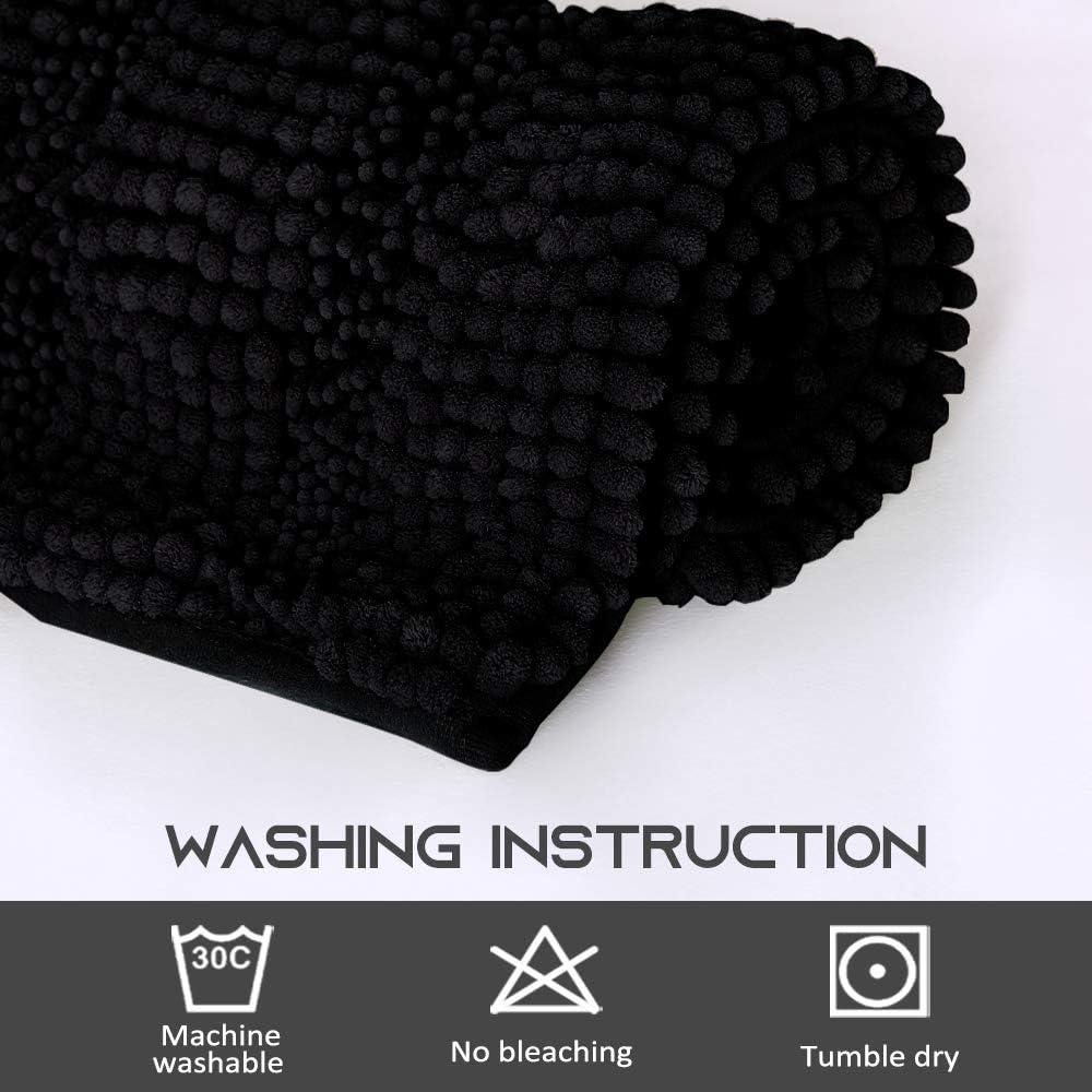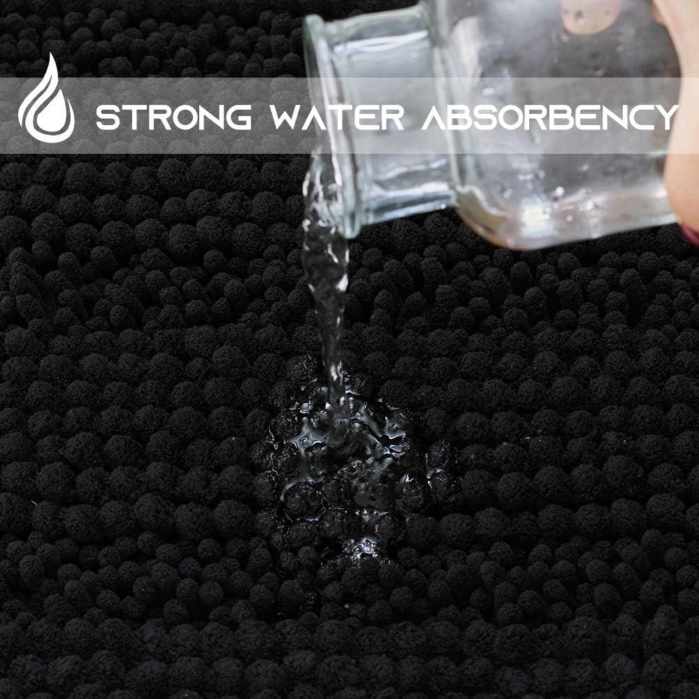 NICETOWN Grey Bathroom Rug, Extra Thick Indoor Outdoor Durable Doormat for Bathroom, Anti-Slip Soft Plush Chenille Shaggy Bath Mat, Living Room Bedroom Mat, Water Absorbent Floor Carpet (47 x 24)(Black)
