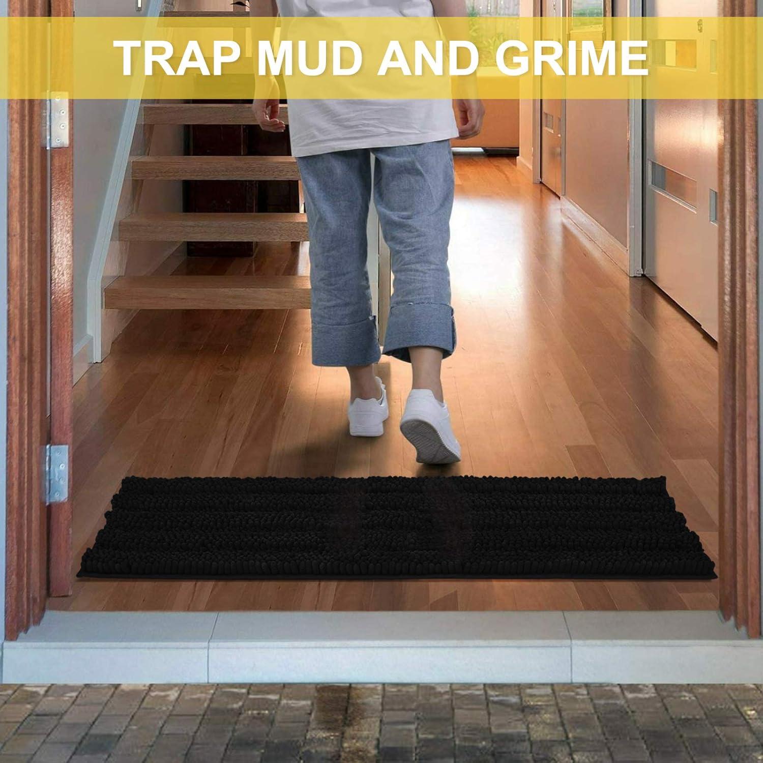 imageNICETOWN Grey Bathroom Rug Extra Thick Indoor Outdoor Durable Doormat for Bathroom AntiSlip Soft Plush Chenille Shaggy Bath Mat Living Room Bedroom Mat Water Absorbent Floor Carpet 47 x 24Black