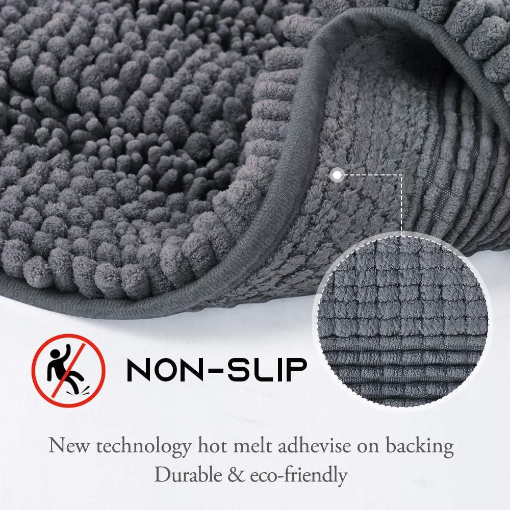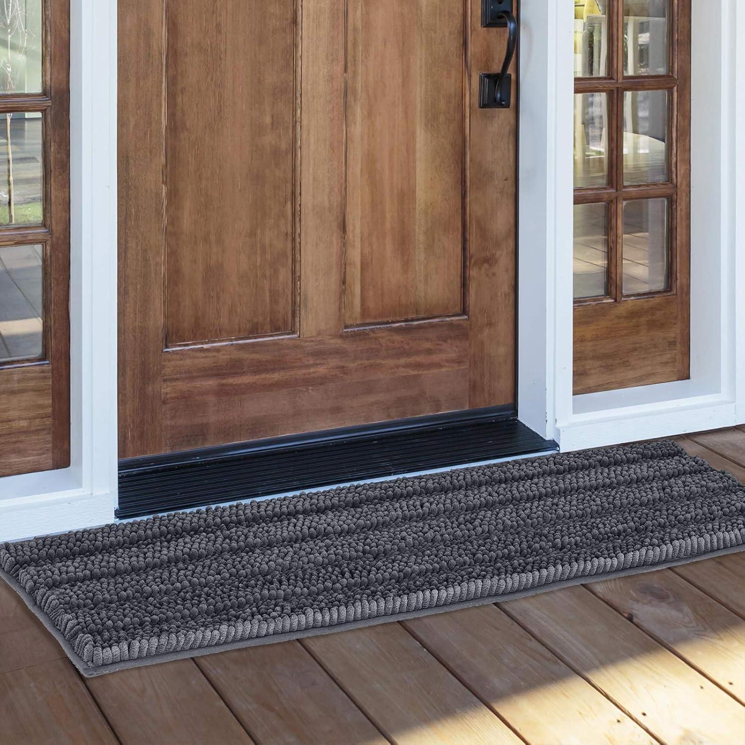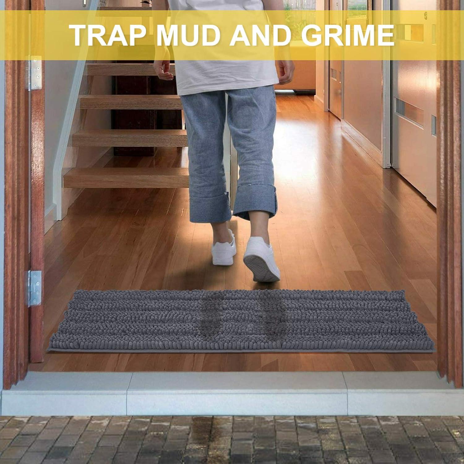 NICETOWN Grey Bathroom Rug, Extra Thick Indoor Outdoor Durable Doormat for Bathroom, Anti-Slip Soft Plush Chenille Shaggy Bath Mat, Living Room Bedroom Mat, Water Absorbent Floor Carpet (47 x 24)(Grey)