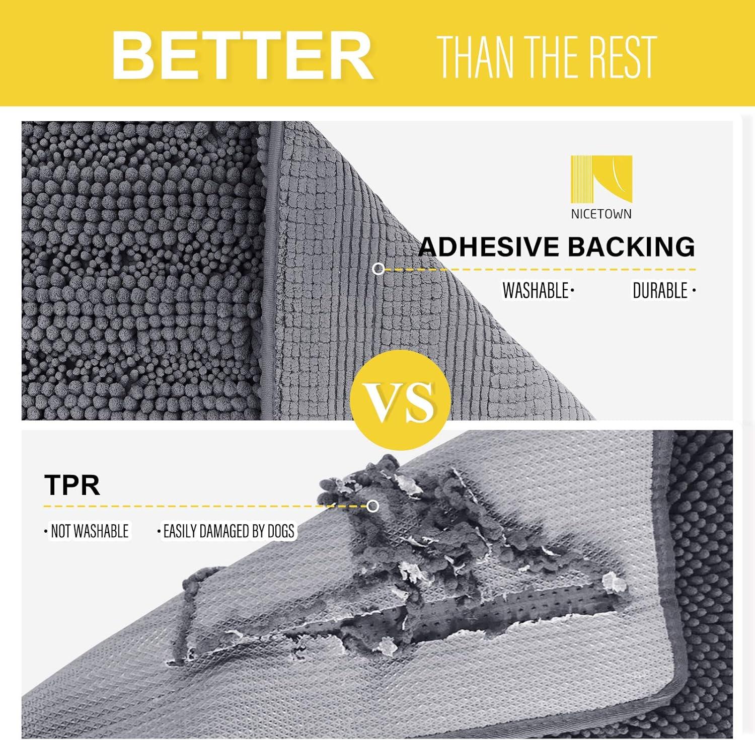 imageNICETOWN Grey Bathroom Rug Extra Thick Indoor Outdoor Durable Doormat for Bathroom AntiSlip Soft Plush Chenille Shaggy Bath Mat Living Room Bedroom Mat Water Absorbent Floor Carpet 47 x 24Grey