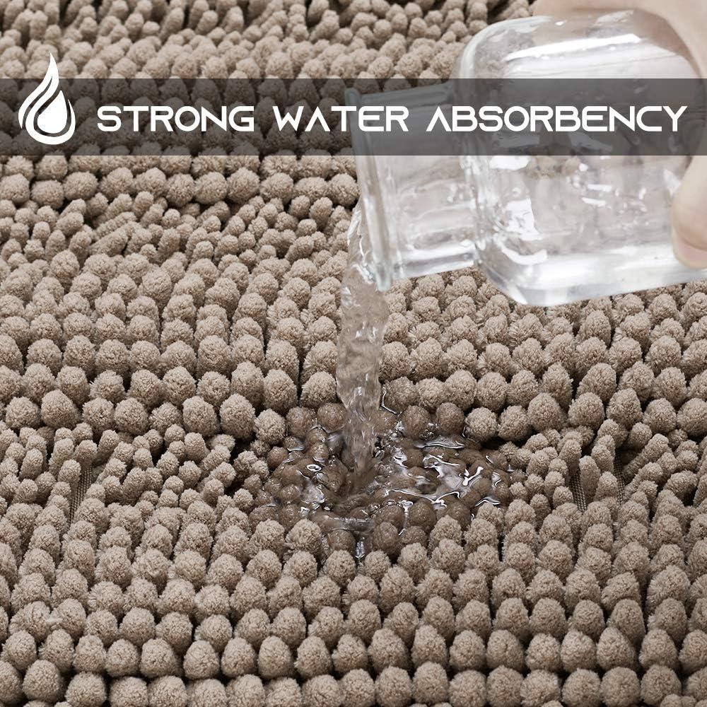 imageNICETOWN Grey Bathroom Rug Extra Thick Indoor Outdoor Durable Doormat for Bathroom AntiSlip Soft Plush Chenille Shaggy Bath Mat Living Room Bedroom Mat Water Absorbent Floor Carpet 47 x 24Taupe Brown