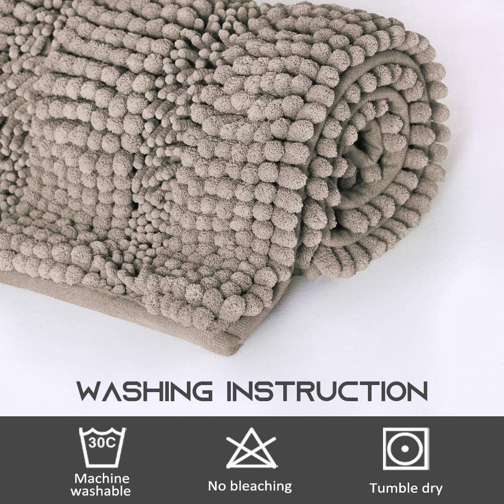 NICETOWN Grey Bathroom Rug, Extra Thick Indoor Outdoor Durable Doormat for Bathroom, Anti-Slip Soft Plush Chenille Shaggy Bath Mat, Living Room Bedroom Mat, Water Absorbent Floor Carpet (47 x 24)(Taupe)