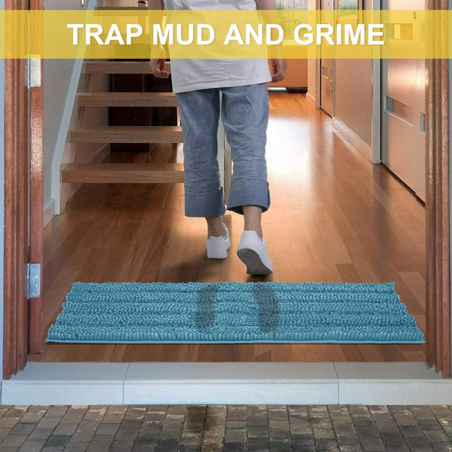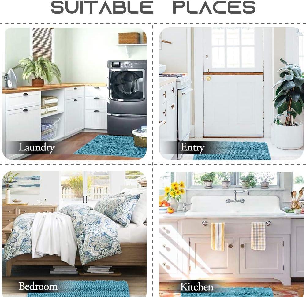 imageNICETOWN Grey Bathroom Rug Extra Thick Indoor Outdoor Durable Doormat for Bathroom AntiSlip Soft Plush Chenille Shaggy Bath Mat Living Room Bedroom Mat Water Absorbent Floor Carpet 47 x 24Teal Blue