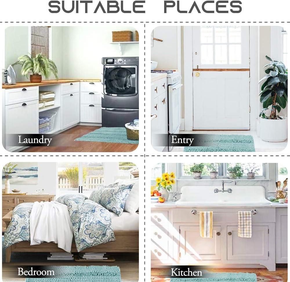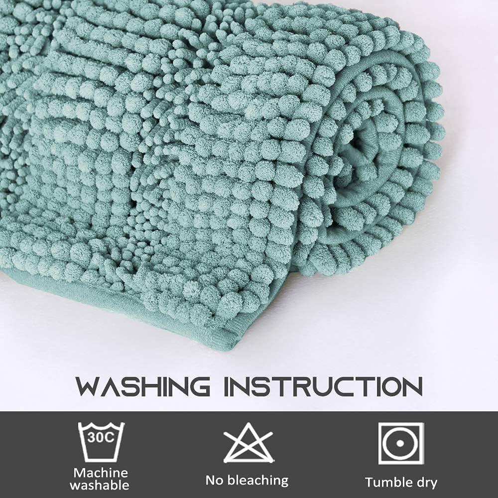 imageNICETOWN Grey Bathroom Rug Sets Extra Thick Bath Rugs for Bathroom AntiSlip Soft Plush Chenille Shaggy Bath Mats Living Room Bedroom Mats Water Absorbent Floor Carpets 20 x 32 Plus 17 x 24Green