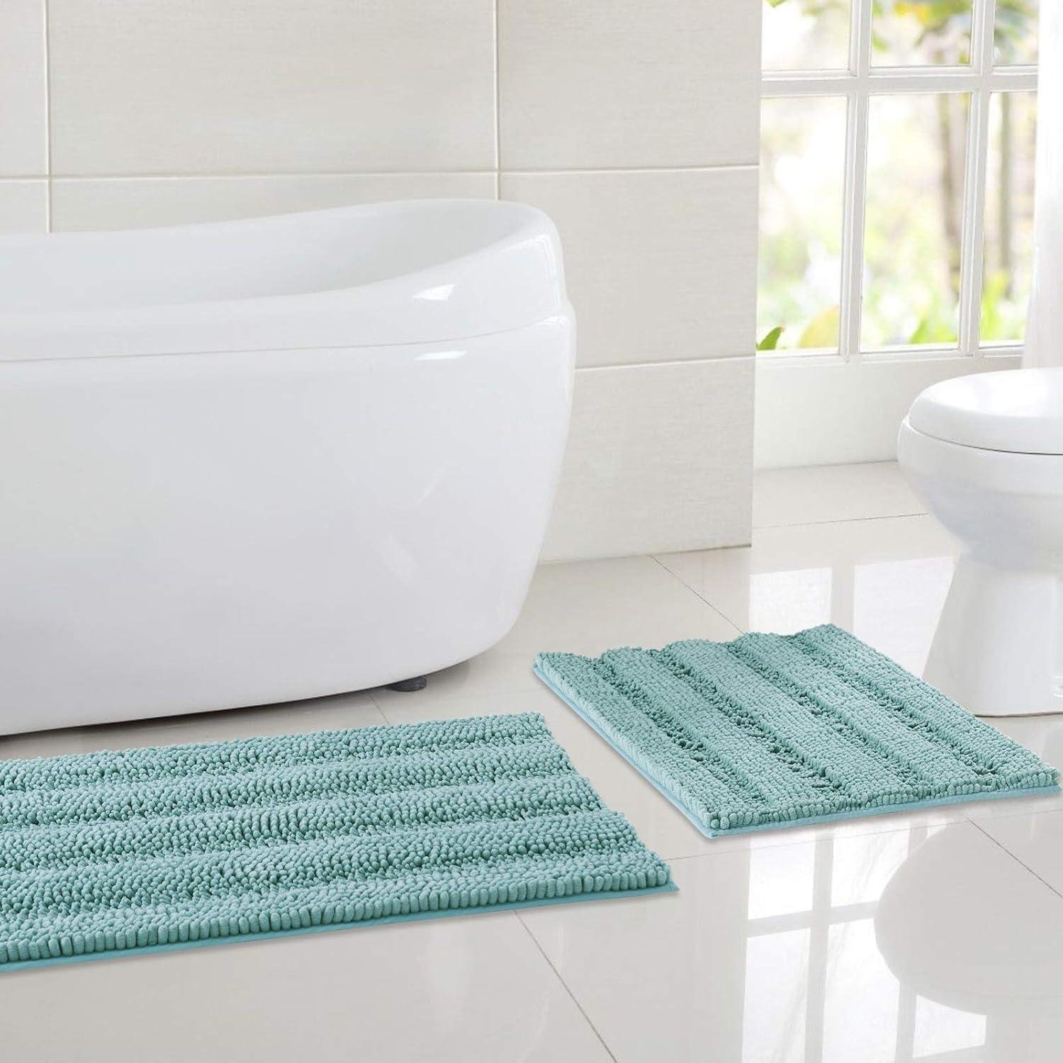 Get your hands on our newest NICETOWN Grey Bathroom Rug Sets, Extra Thick Bath Rugs for Bathroom, Anti-Slip Soft Plush Chenille Shaggy Bath Mats, Living Room Bedroom Mats, Water Absorbent Floor Carpets (20 x 32 Plus 17 x 24)(Eggshell Green) and enjoy a limited-time discount offer.