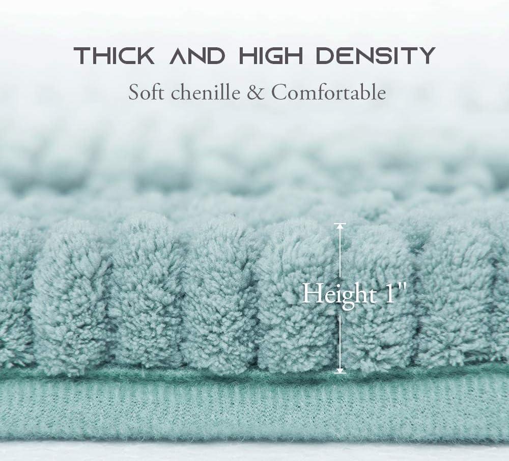 NICETOWN Grey Bathroom Rug Sets, Extra Thick Bath Rugs for Bathroom, Anti-Slip Soft Plush Chenille Shaggy Bath Mats, Living Room Bedroom Mats, Water Absorbent Floor Carpets (20 x 32 Plus 17 x 24)(Green)