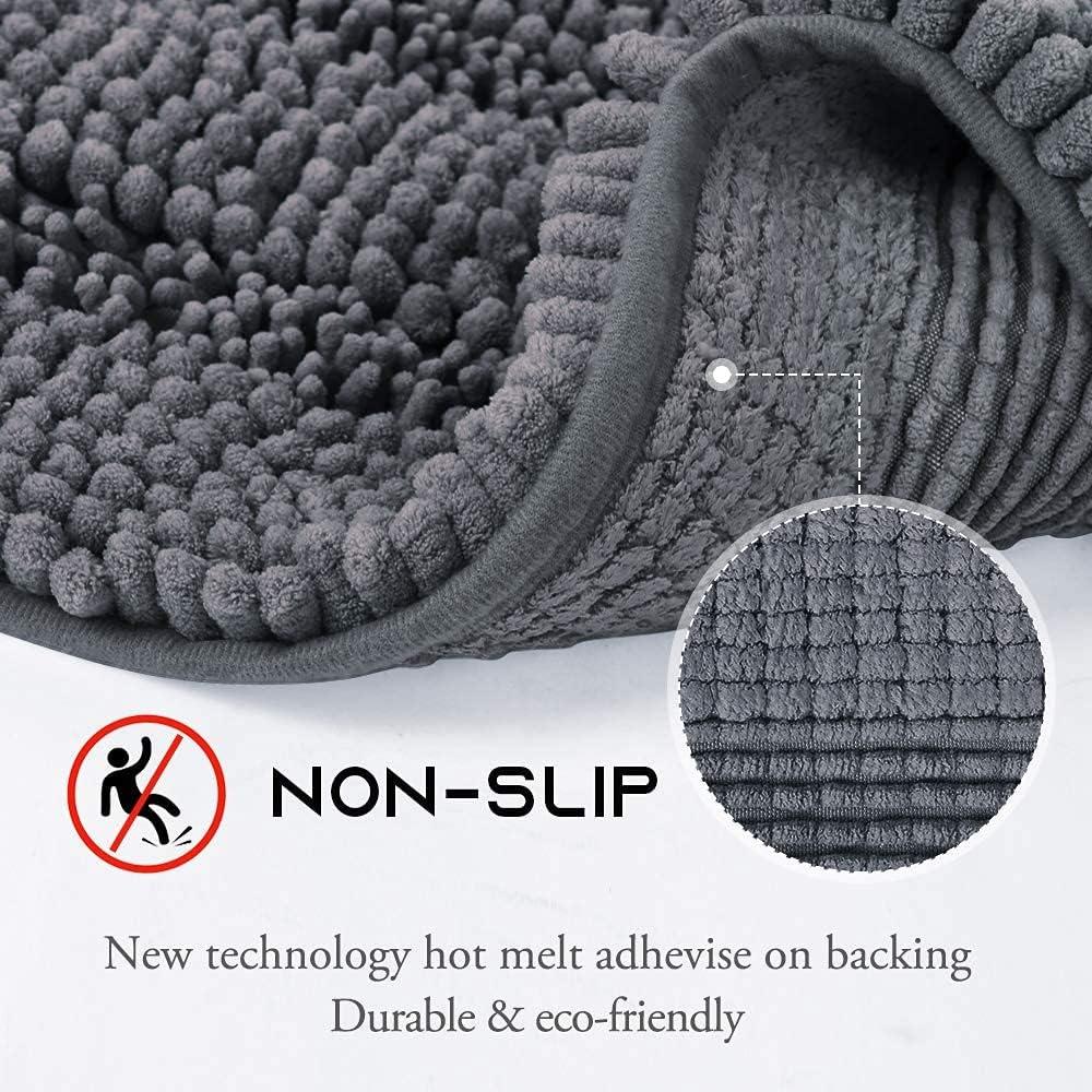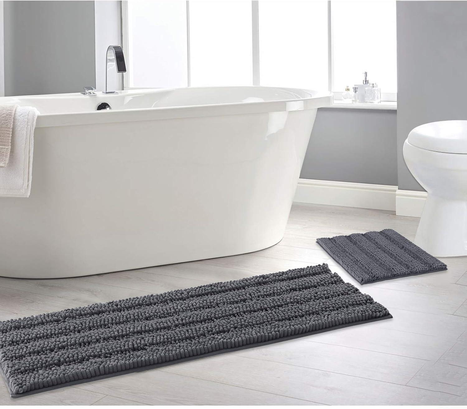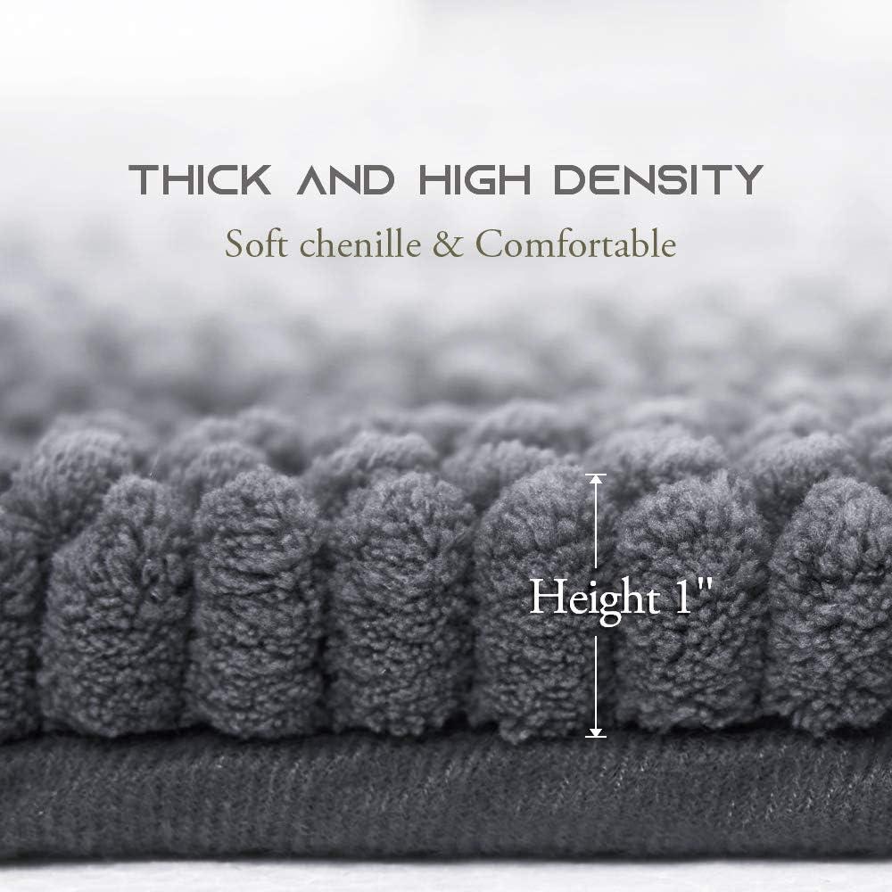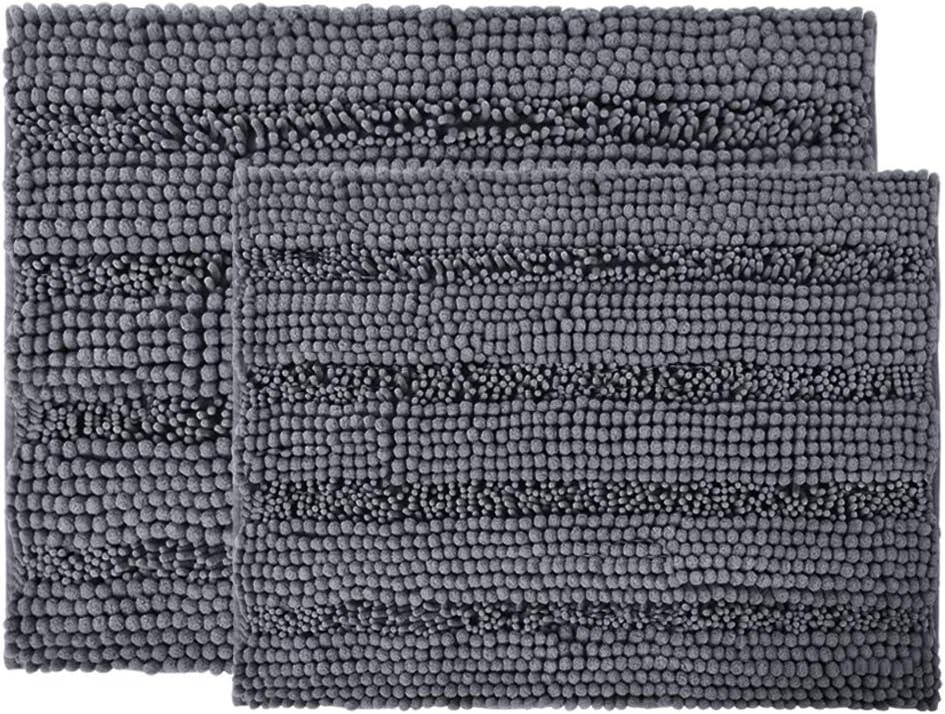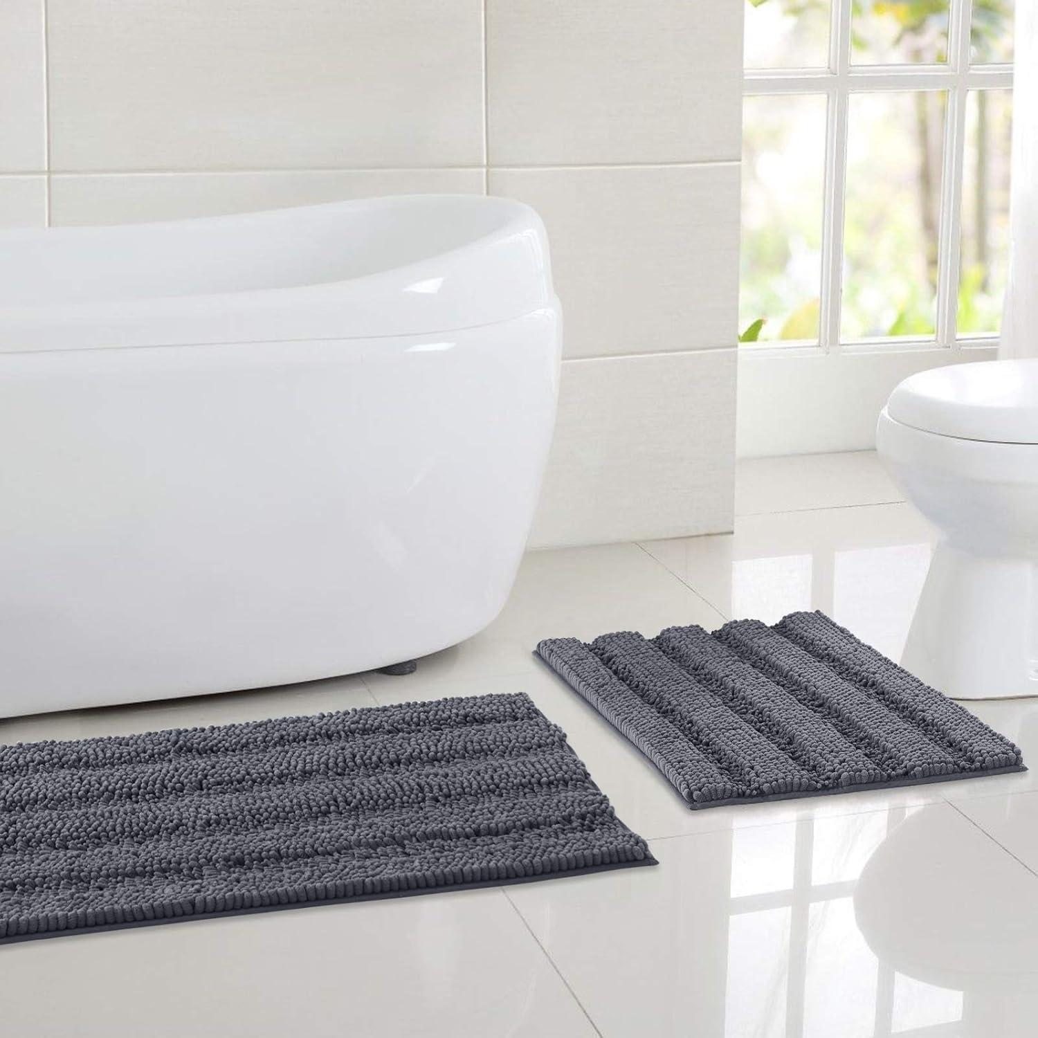 NICETOWN Grey Bathroom Rug Sets, Extra Thick Bath Rugs for Bathroom, Anti-Slip Soft Plush Chenille Shaggy Bath Mats, Living Room Bedroom Mats, Water Absorbent Floor Carpets (20 x 32 Plus 17 x 24)(Grey)